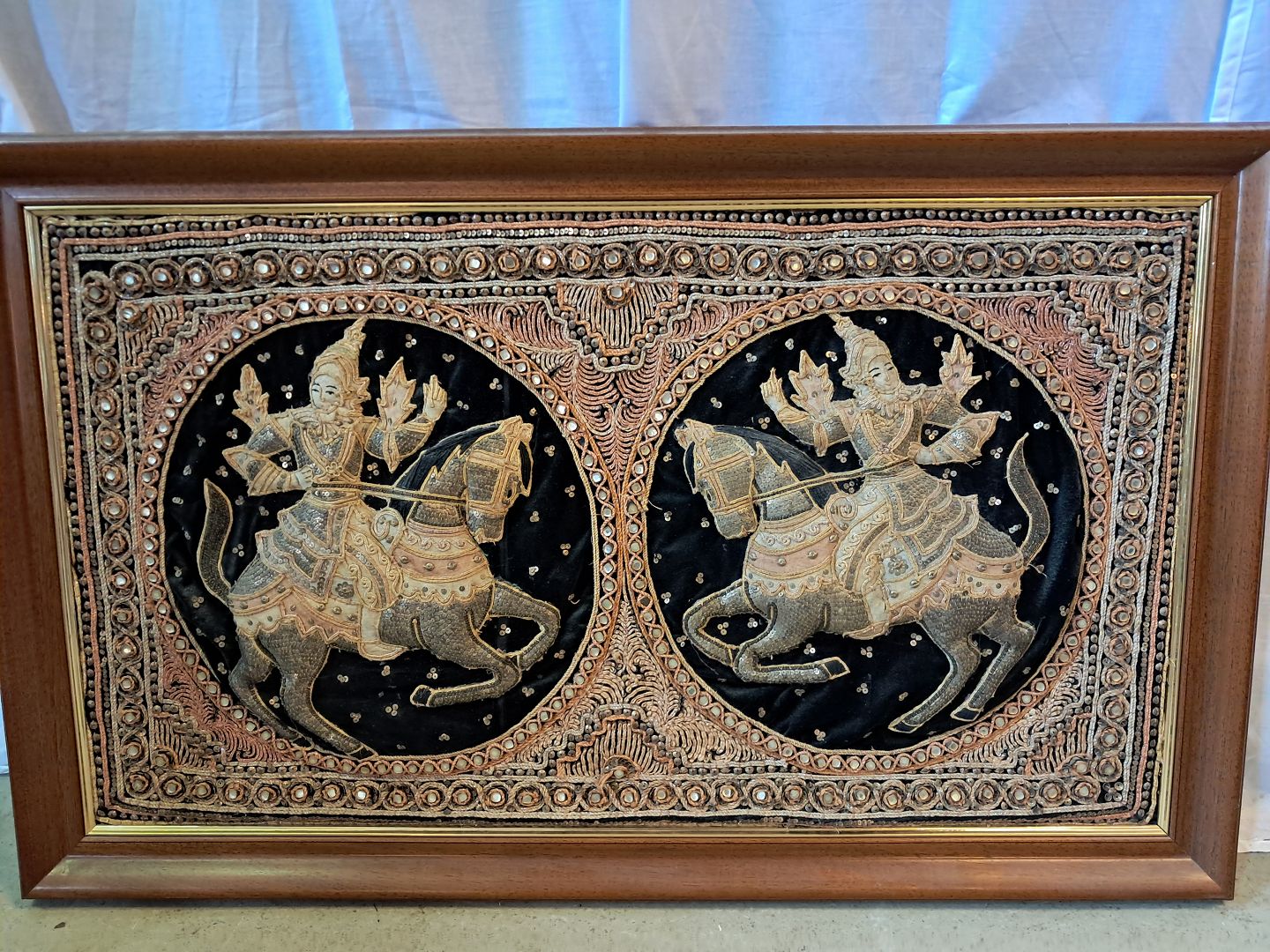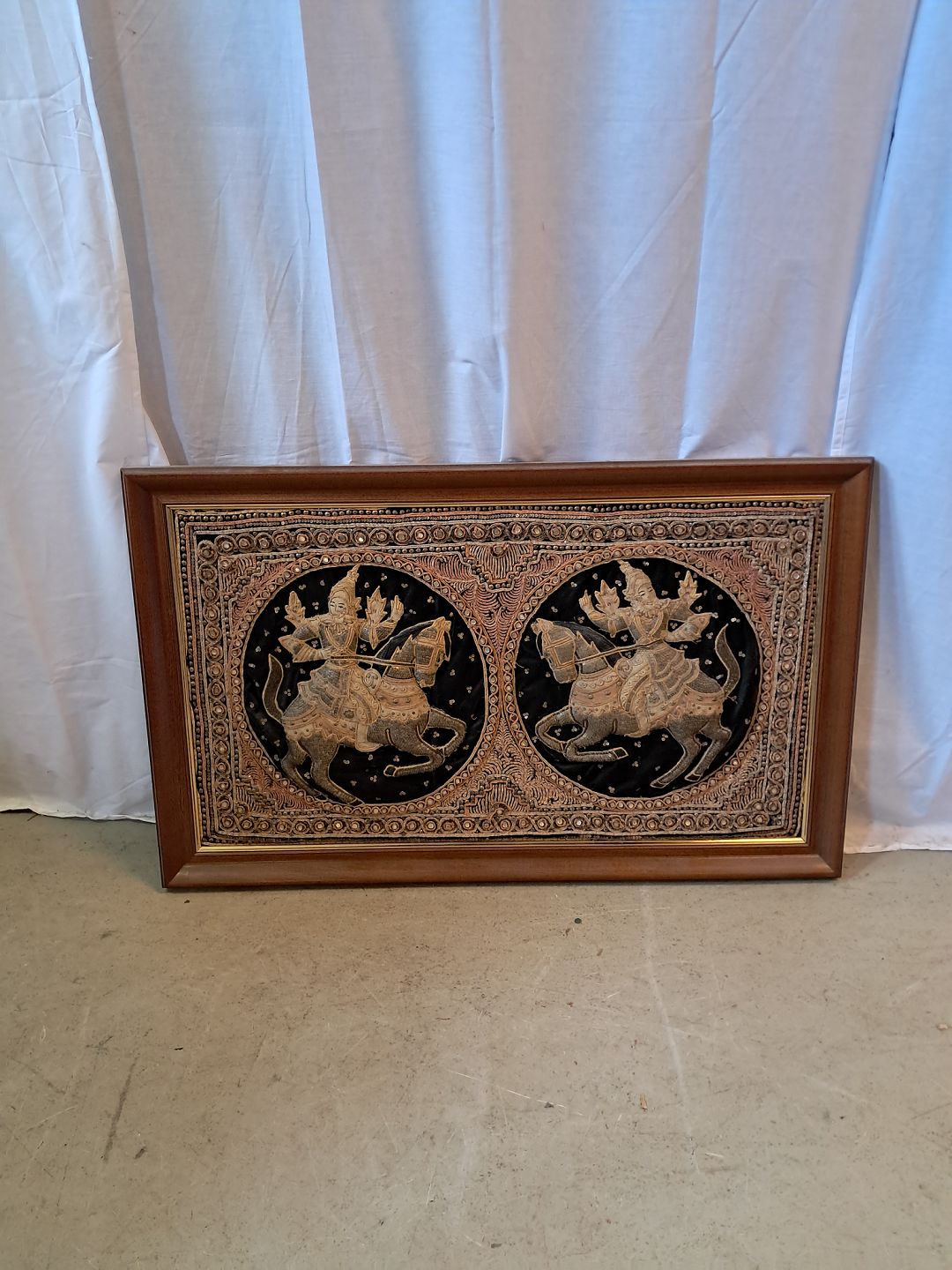 Indisk stof billede i træramme, fra 1990erne.