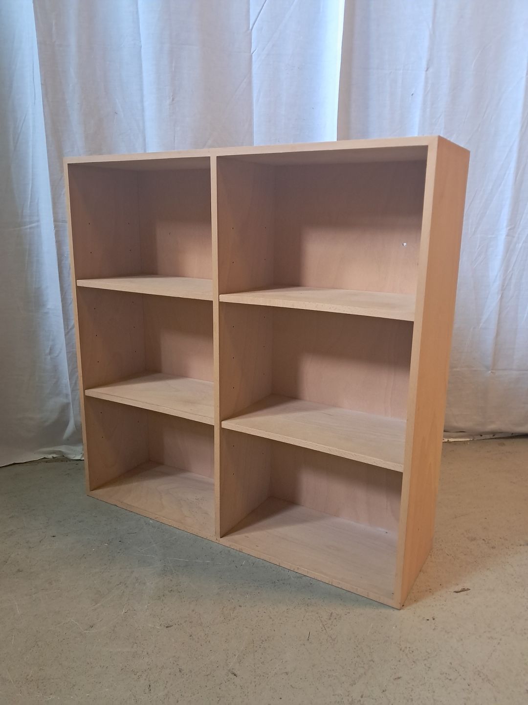 At-bo reolkasse i krydsfiner, fra 2000erne. Den har brugsspor og der medfølger ikke ophæng. Højde 70cm Bredde 70cm Dybde 20cm Emne nummer: 77132