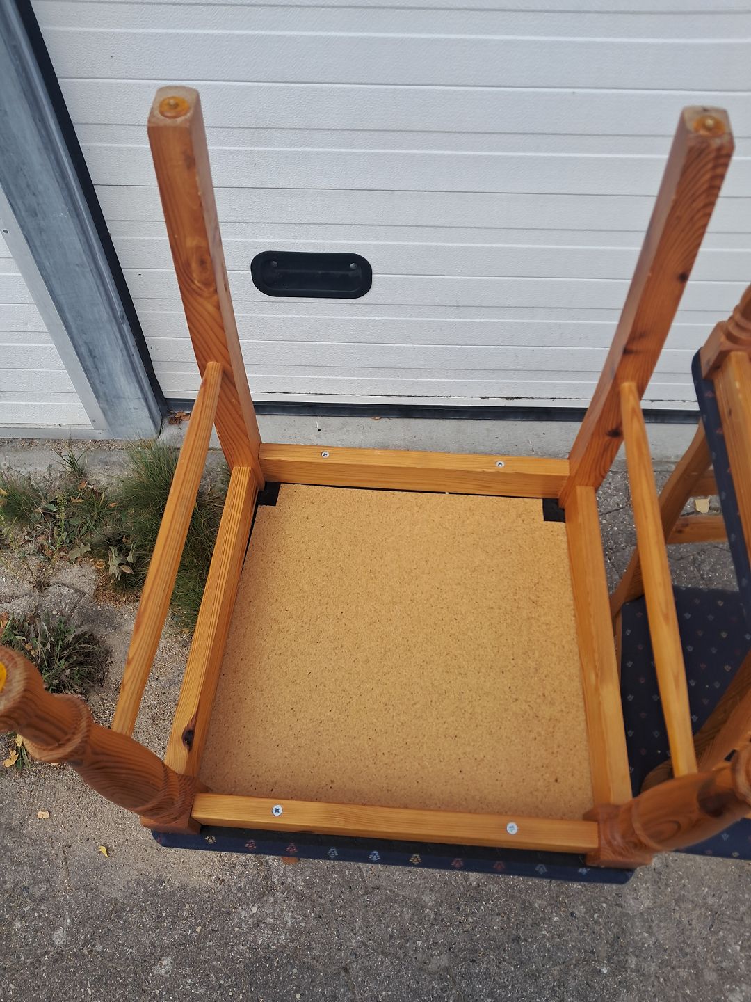4 Stole i massivt fyrretræ, fra 1990erne. De har brugsspor. Ryghøjde 88cm Sædehøjde 46cm Emne nummer: 77141