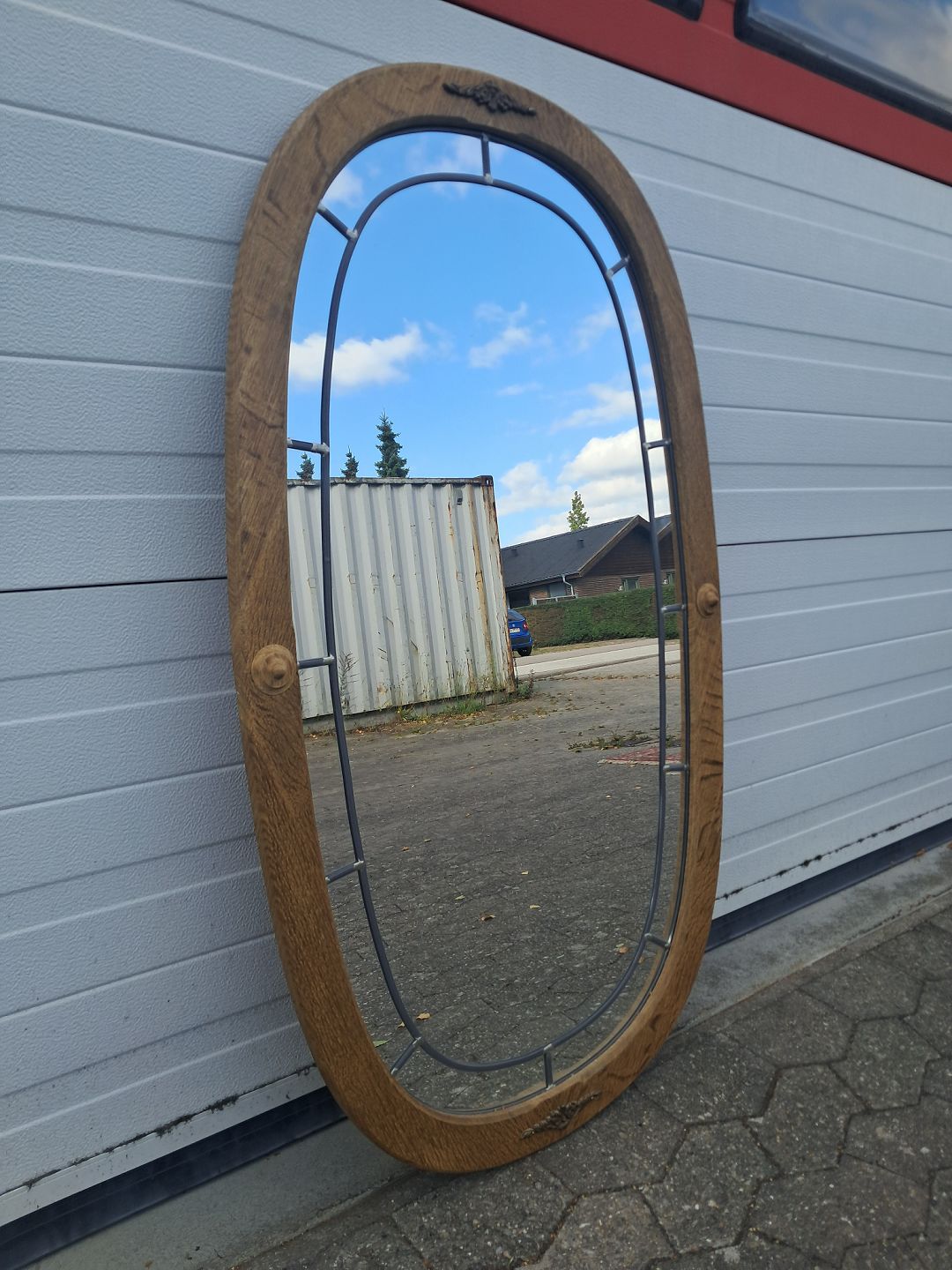 Spejl i massivt egtræ, fra 1980erne.