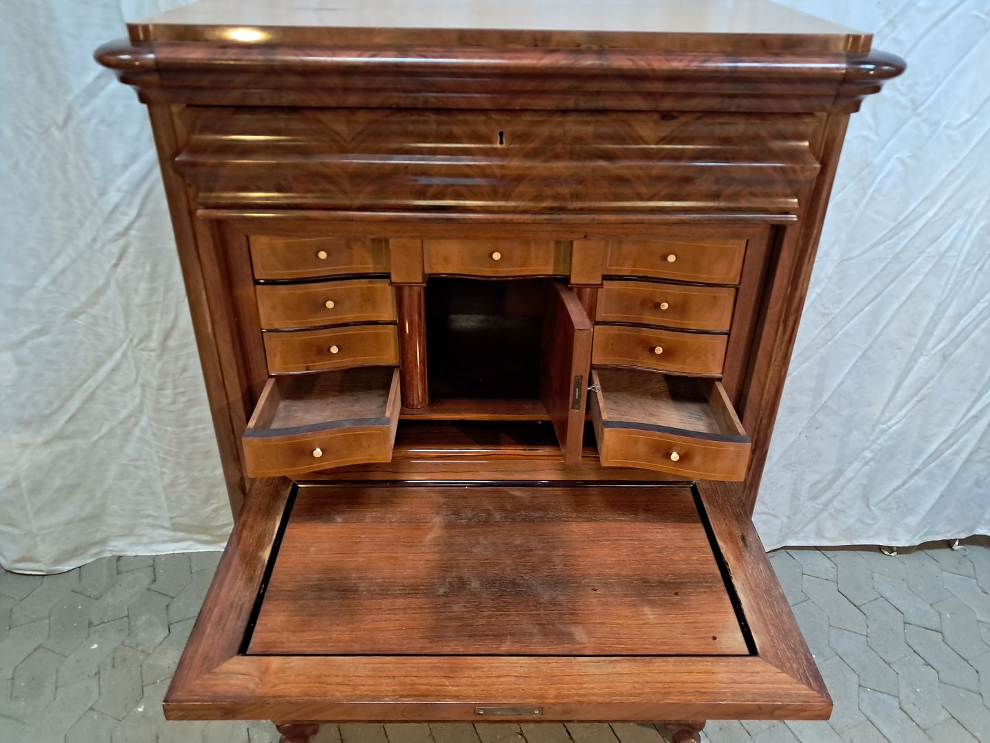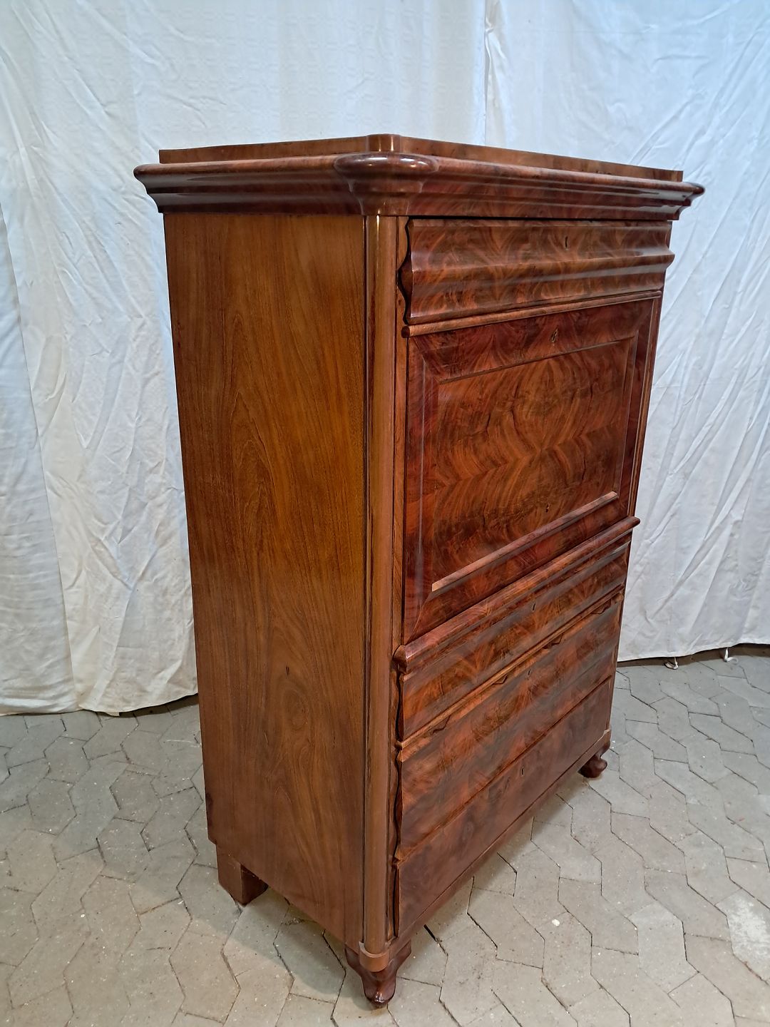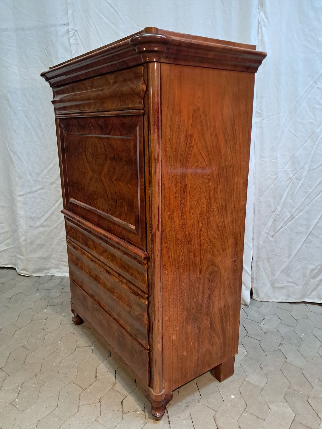 Skuffemøbel i fineret mahogni, fra 1900erne. Den har patina. Højde 153cm Bredde 106cm Dybde 56cm Emne nummer: 91911