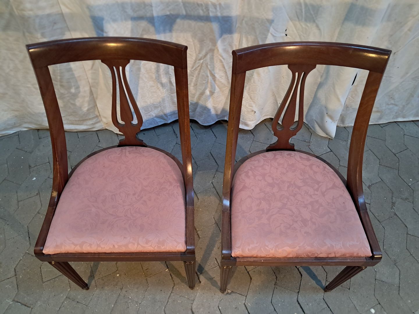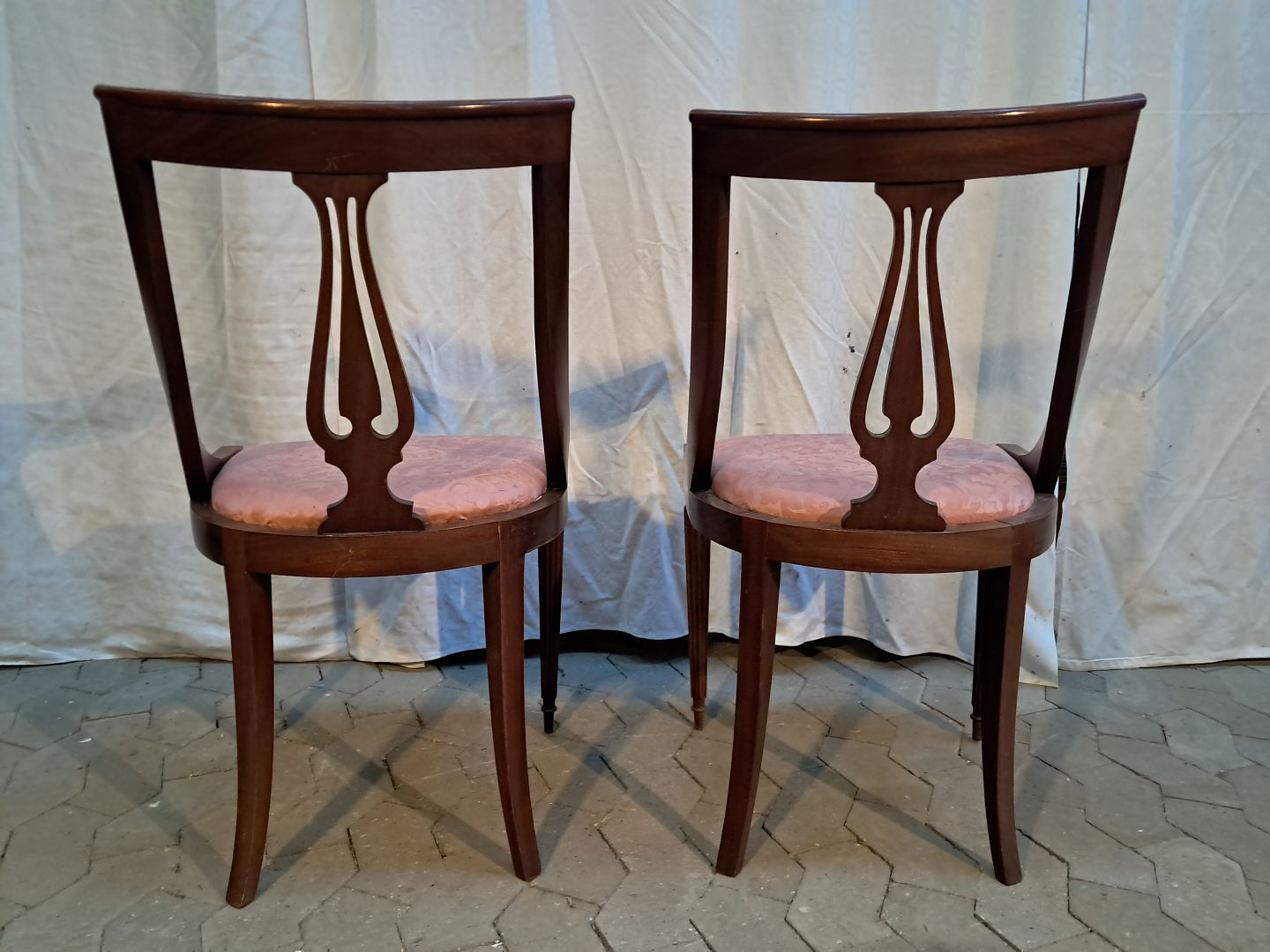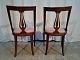 2 Salonstole i mahogni, fra 1980erne. De er lidt ledløse, men kan bruges. Ryghøjde 85cm Sædehøjde 46cm Emne nummer: 91922