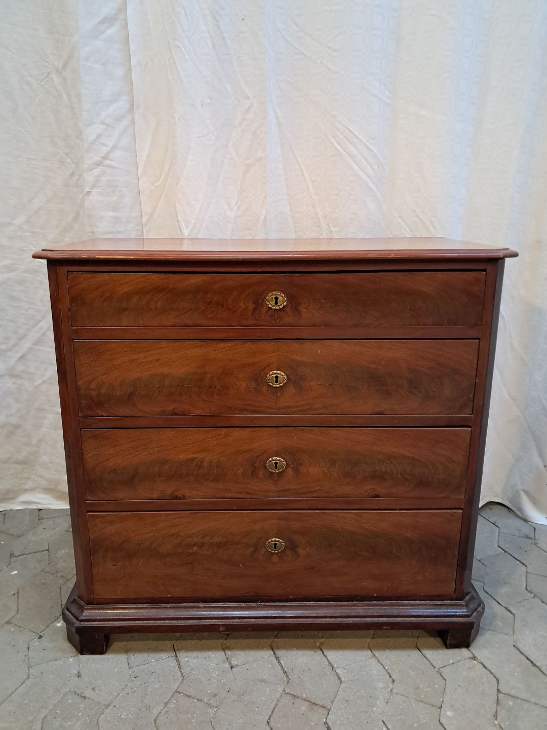 Kommodei fineret mahogni, fra 1910erne. Den har brugsspor. Højde 85cm Bredde 91cm Dybde 45cm Emne nummer: 91934