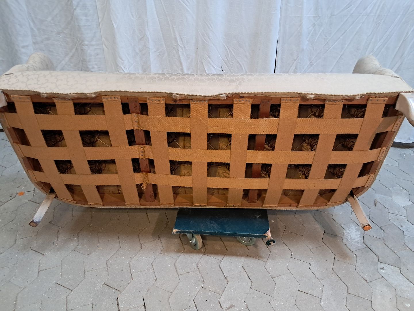 3 Personers sofa med stofbetræk, fra 1920erne. Den har brugsspor. Ryghøjde 86cm Sædehøjde 42cm Bredde 167cm Dybde 79cm Se emne nr. 91954 Emne nummer: 91953