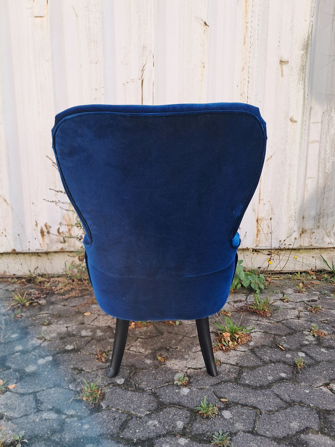 Lænestol med stofbetræk, af nyere dato.