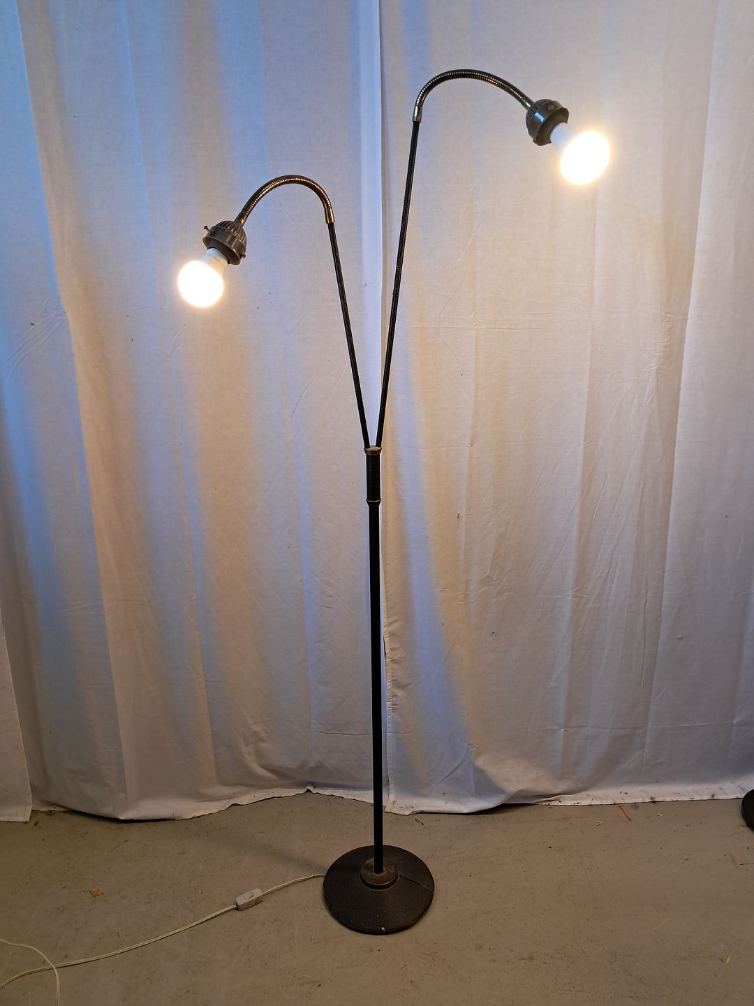 Gulvlampe i metal, fra 1960erne. Den har brugsspor. Højde 160cm Diameter på fod 25cm Emne nummer: 77193