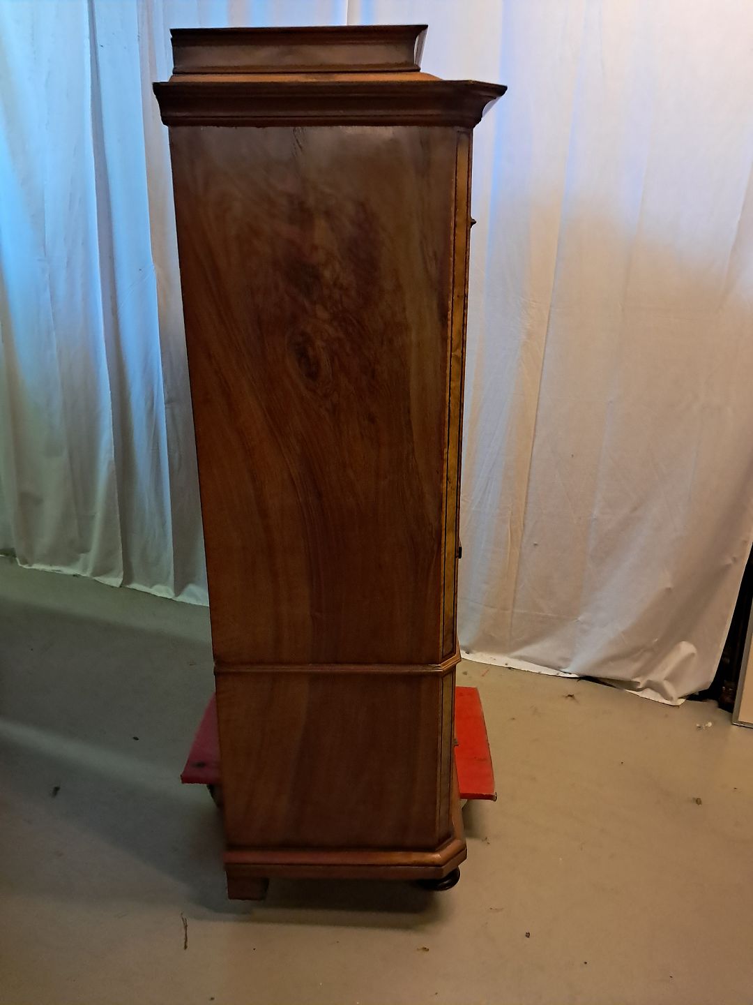 Sølvtøjsskab i fineret nødetræ og mahogni, fra 1900erne. Det har brugsspor. Højde 165cm Bredde 104cm Dybde 52cm Emne nummer: 77216