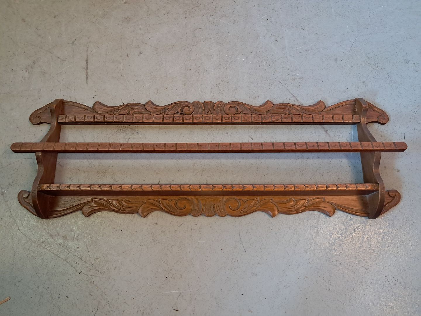 Tallerkenrække i massivt egetræ, fra 1950erne.