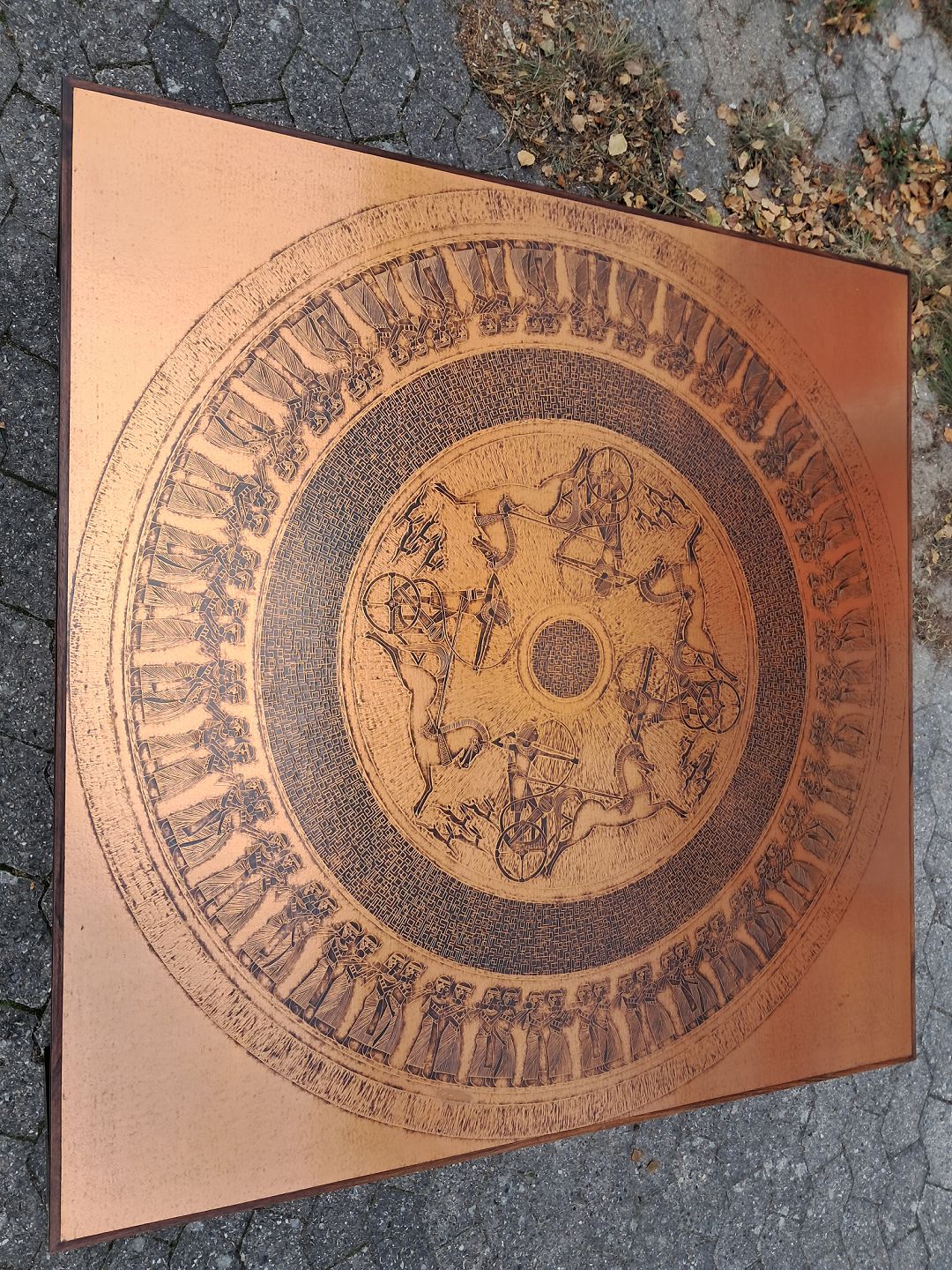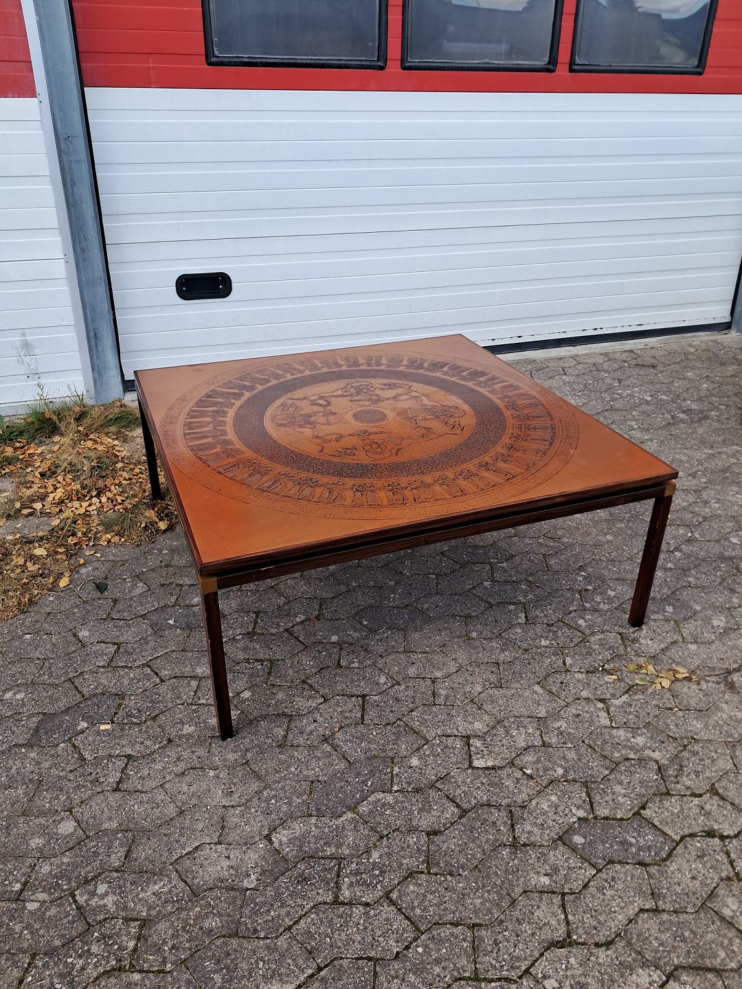 Sofabord i fineret palisander med metalplade, fra 1960erne.