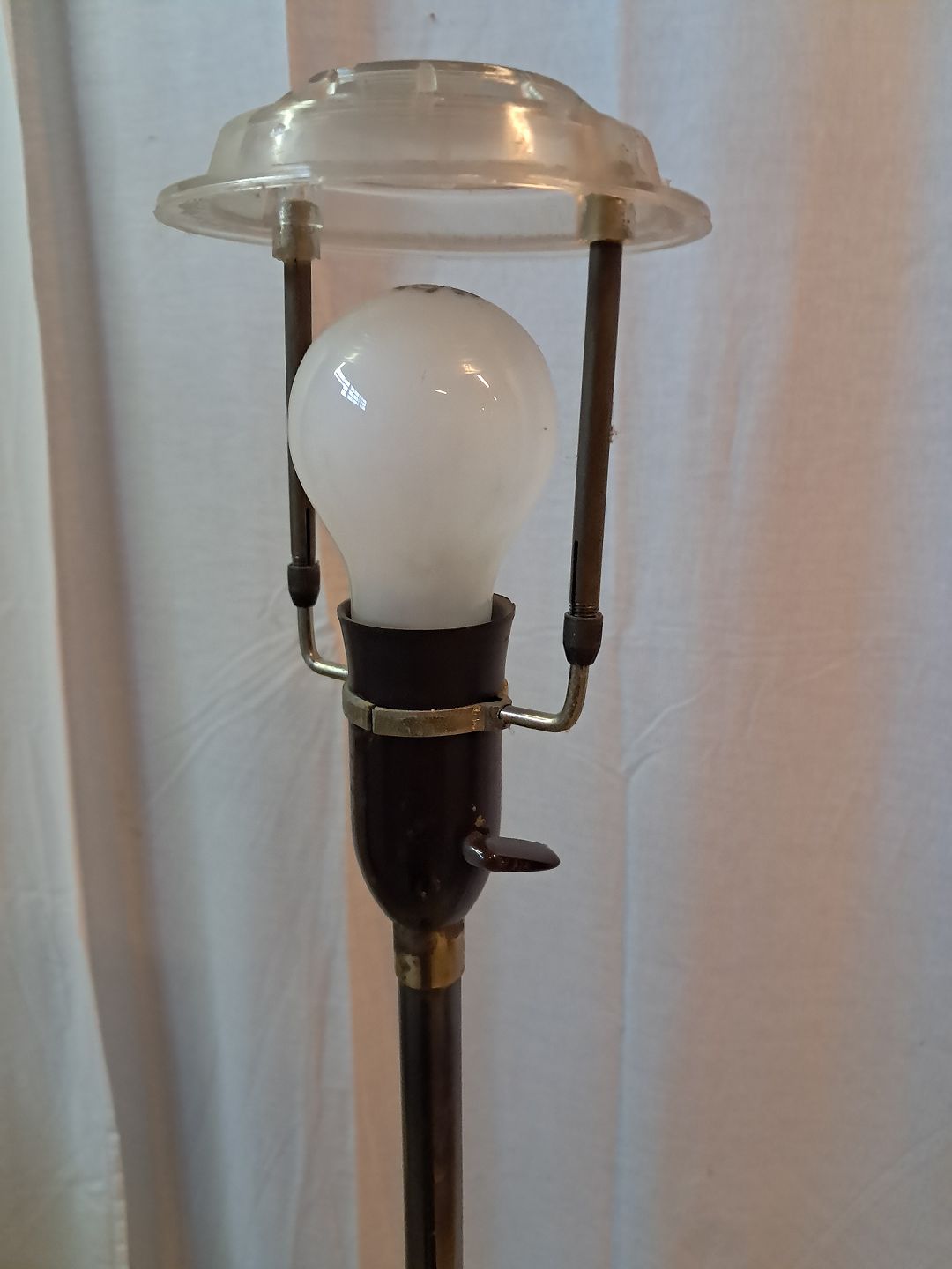 Standerlampe i metal, fra 1960erne. Den har brugsspor. Højde 127cm Diameter på fod 27cm Emne nummer: 77324