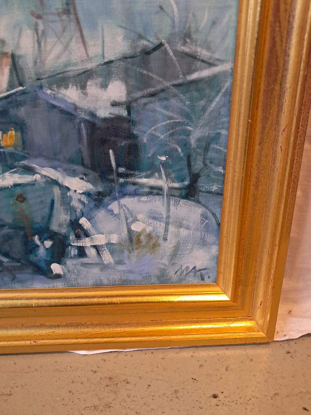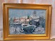 Maleri af Dragør Havn i guldmalet ramme, af : Mogens Amdi Thorsen (1924-2016)