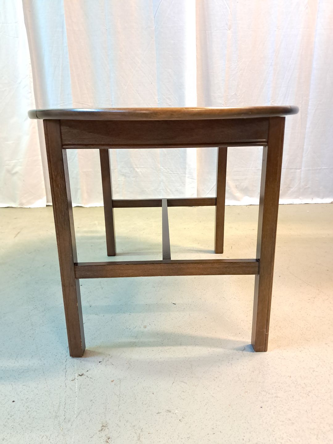 Sofabord i fineret mahogni, fra 1980erne. Det har brugsspor. Højde 54cm Bredde 64cm Længde 88cm Emne nummer: 77378
