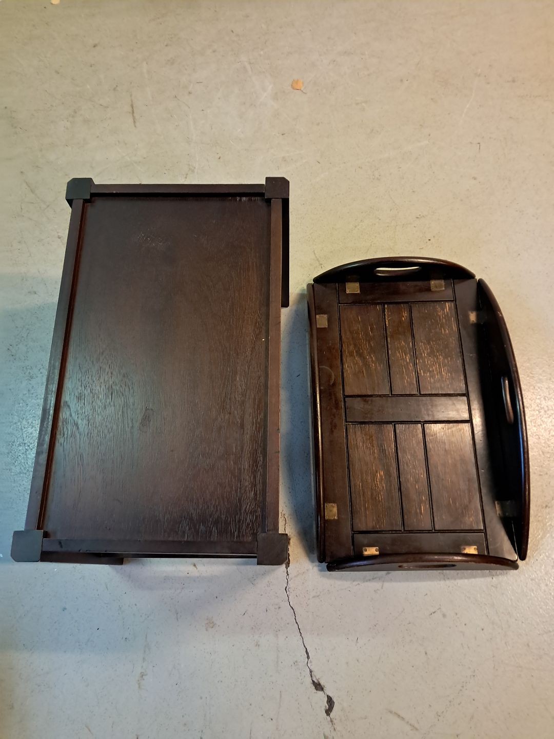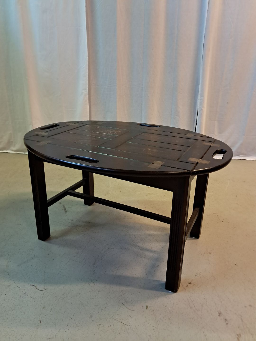 Butlers tray i fineret bøgetræ, fra 1980erne. Det har brugsspor. Højde 47cm Bredde 64cm Længde 83cm Emne nummer: 77409