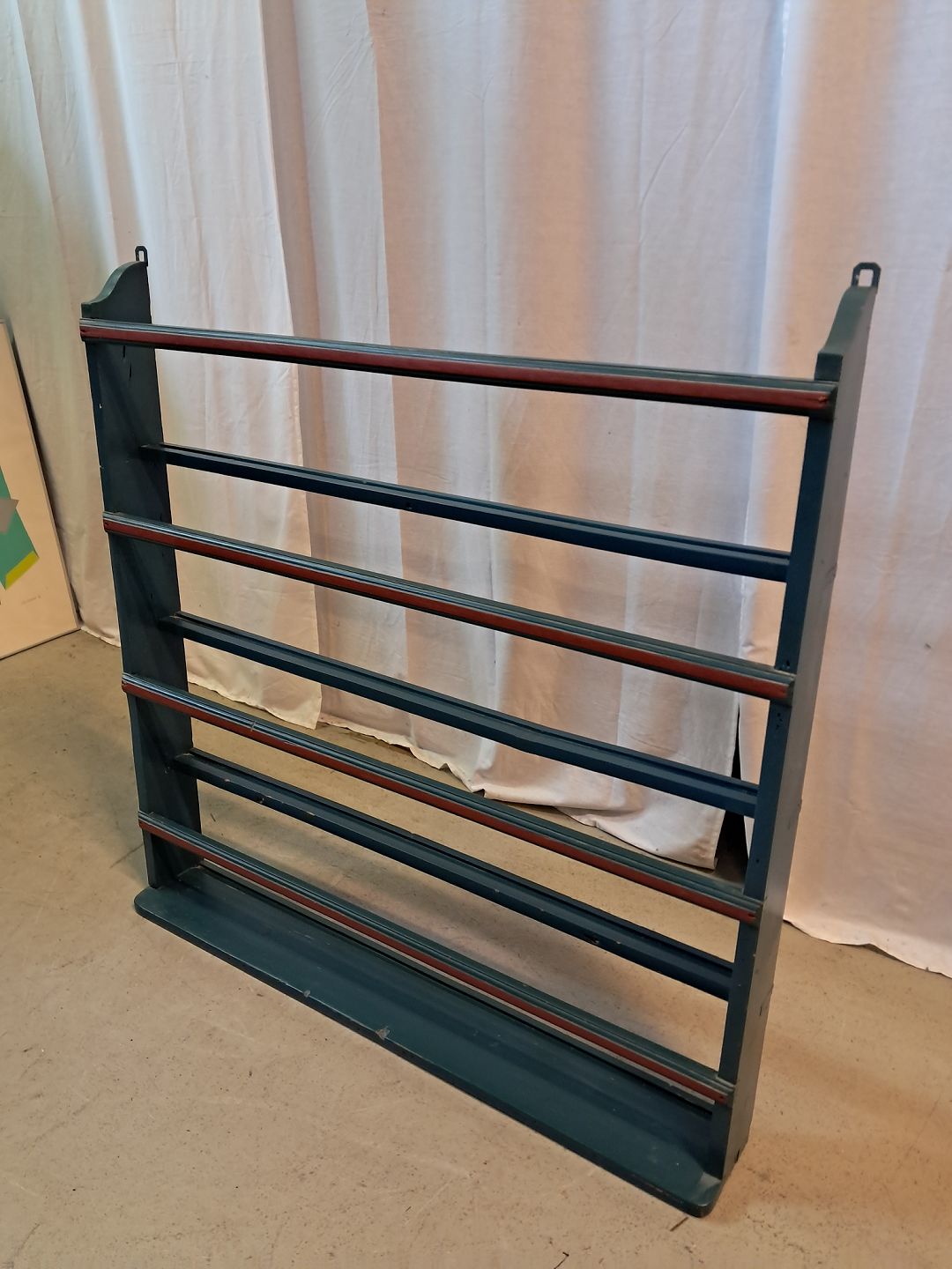 Tallerkenrække i malet massivt træ, fra 1920erne. Den har brugsspor. Højde 96cm Bredde 93cm Dybde 10cm Emne nummer: 77422
