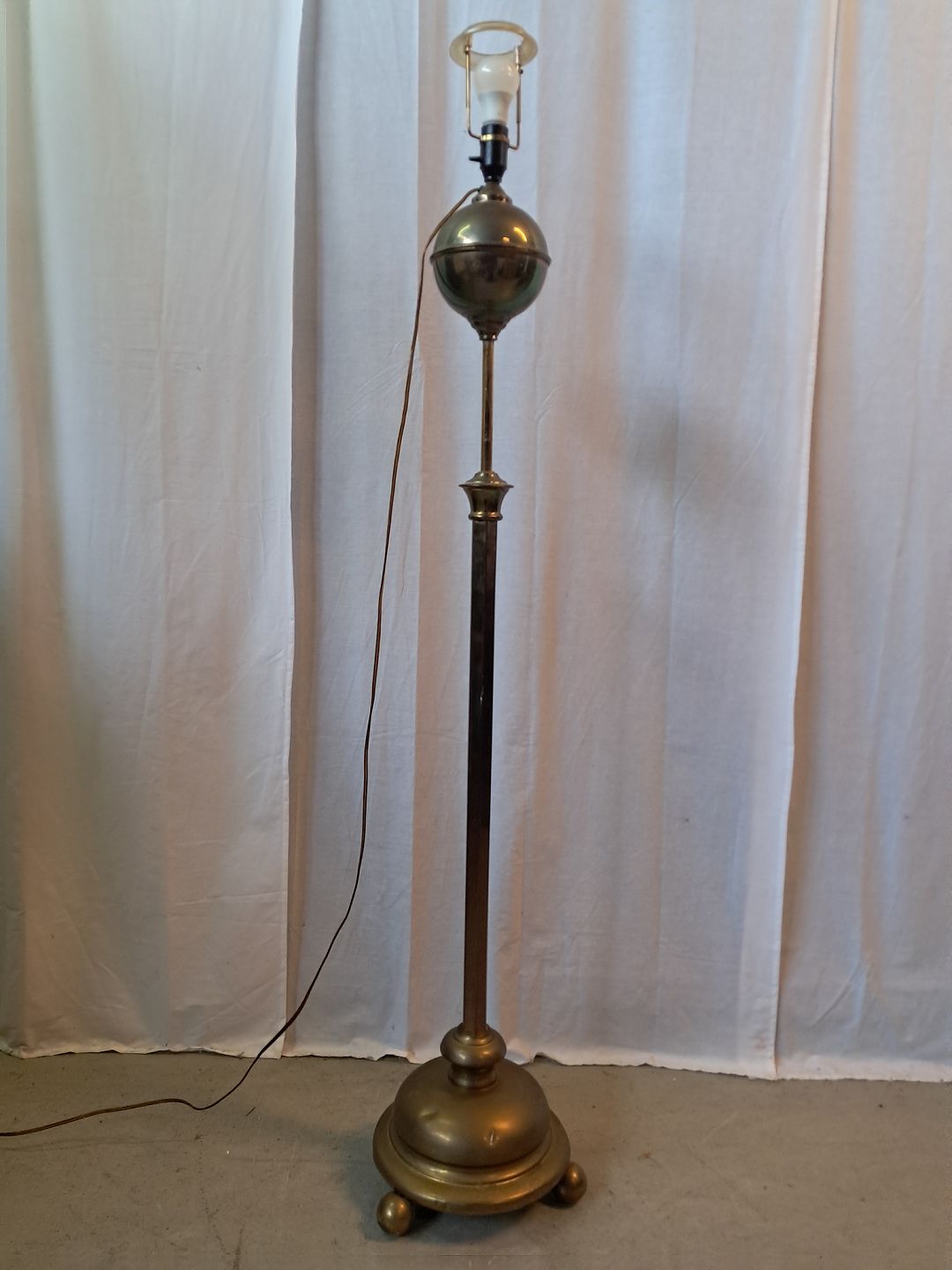 Standerlampe i messing, fra 1910erne. Den har brugsspor. Højde 150cm Diameter på fod 33cm Emne nummer: 77508