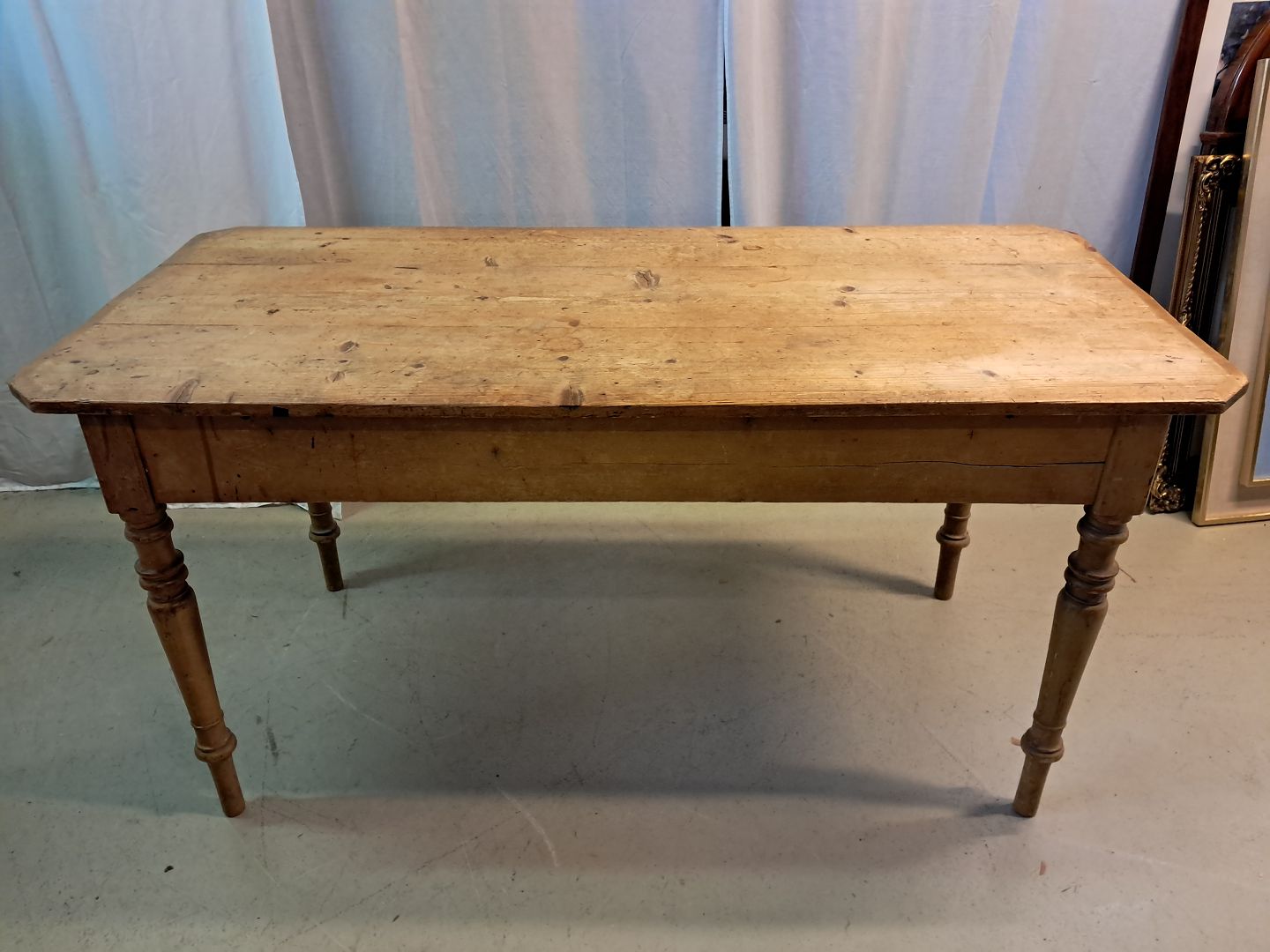 Bord med skuffe i massivt fyrretræ, fra 1910erne. Det har brugsspor. Højde 79cm Bredde 71cm Længde 155cm Emne nummer: 77564
