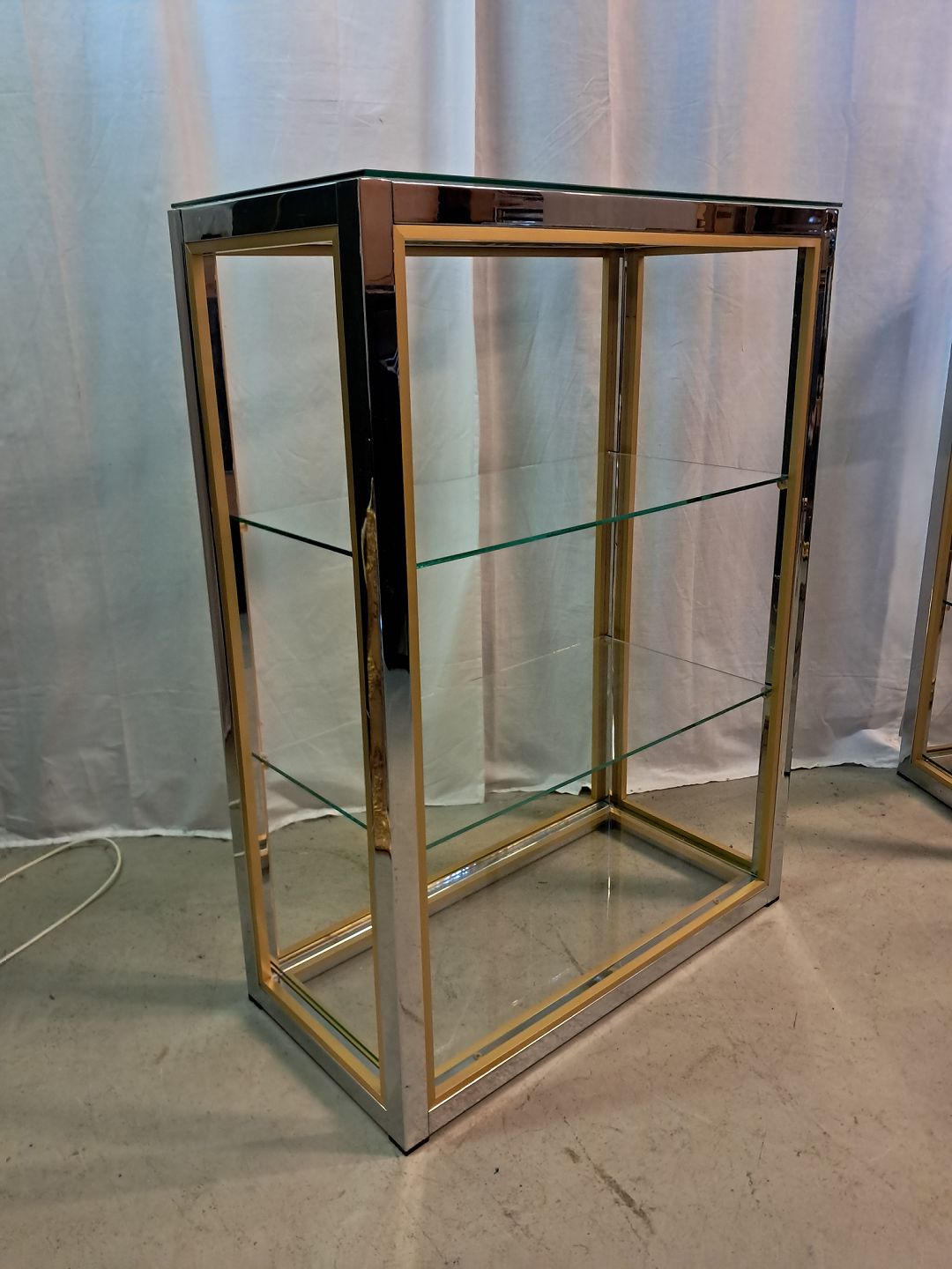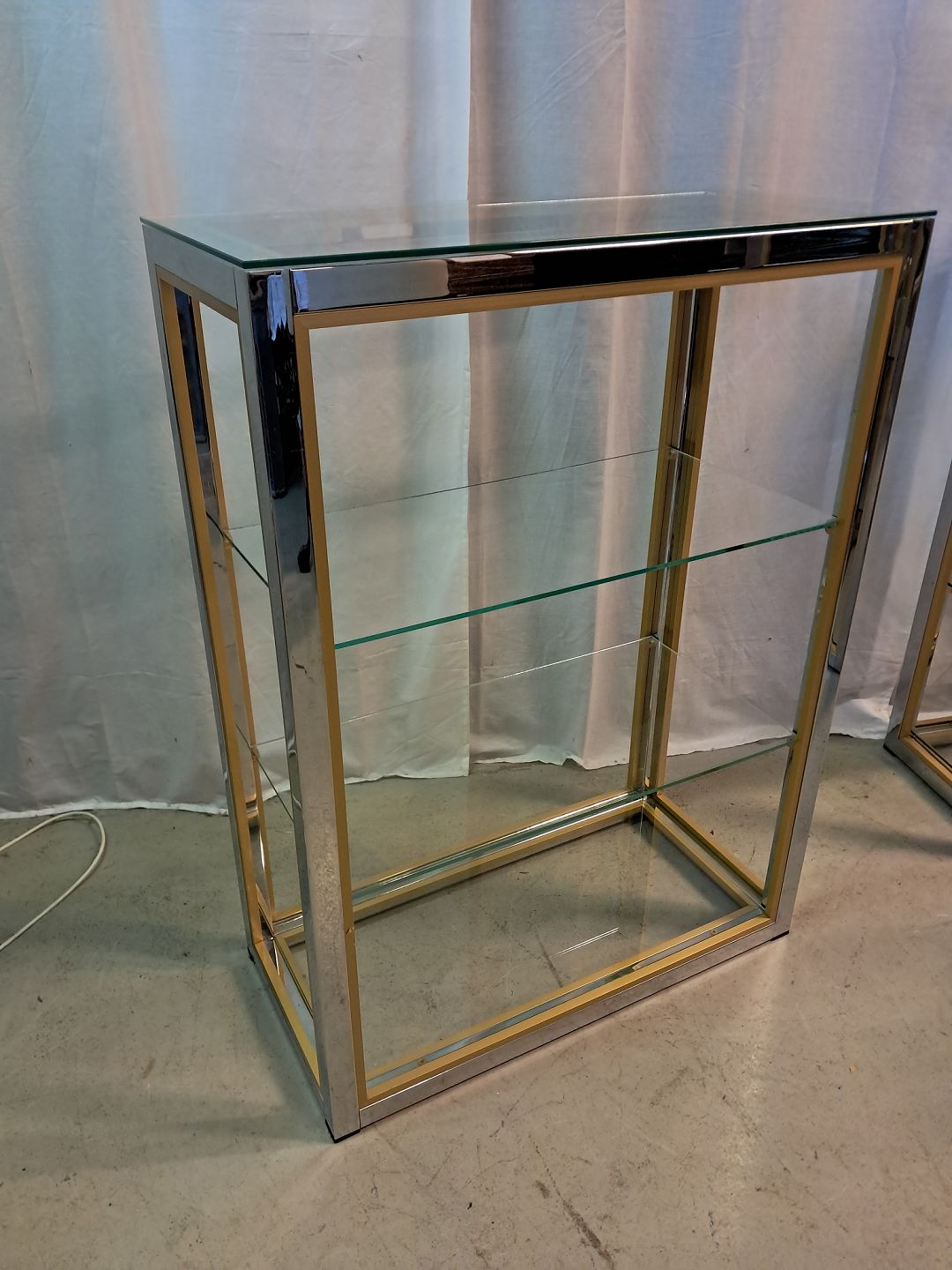 Forkromet reol i metal med glashylder, fra 1980erne. Den har brugsspor. Højde 105cm Bredde 76cm Dybde 37cm Se emne nr. 77573 og 77574 Emne nummer: 77572