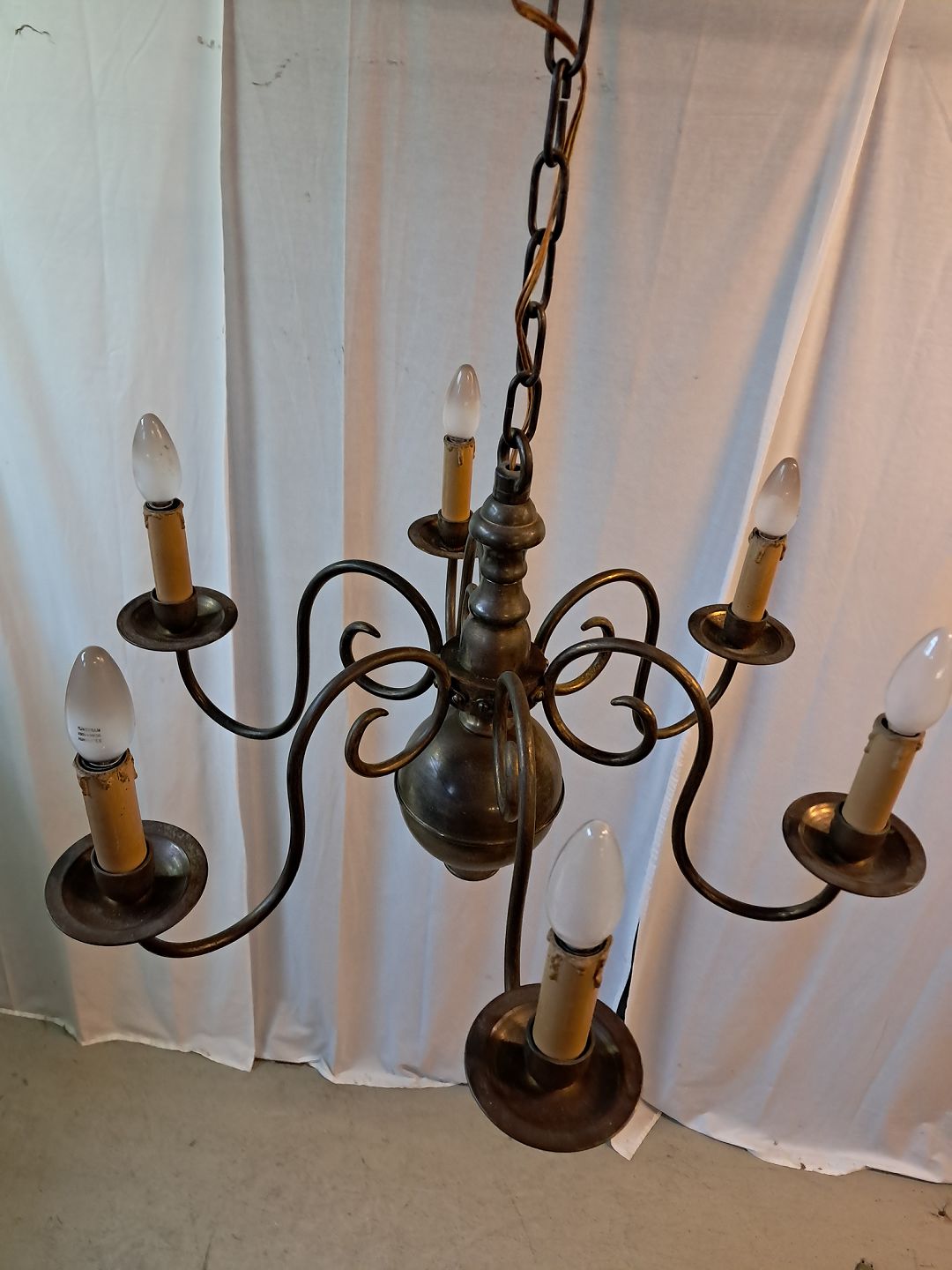6-armet kirkekrone i bruneret messing, fra 1930erne.