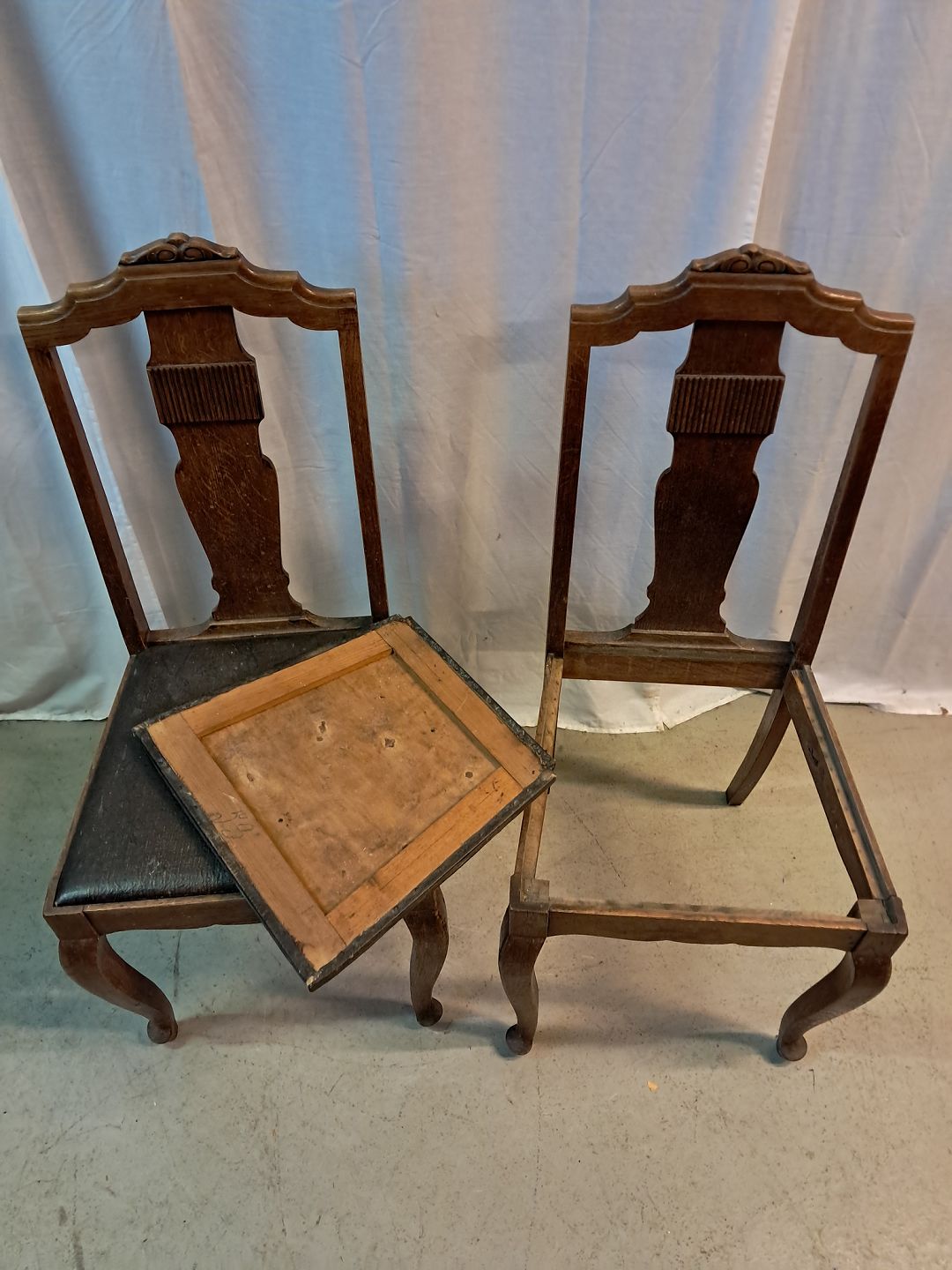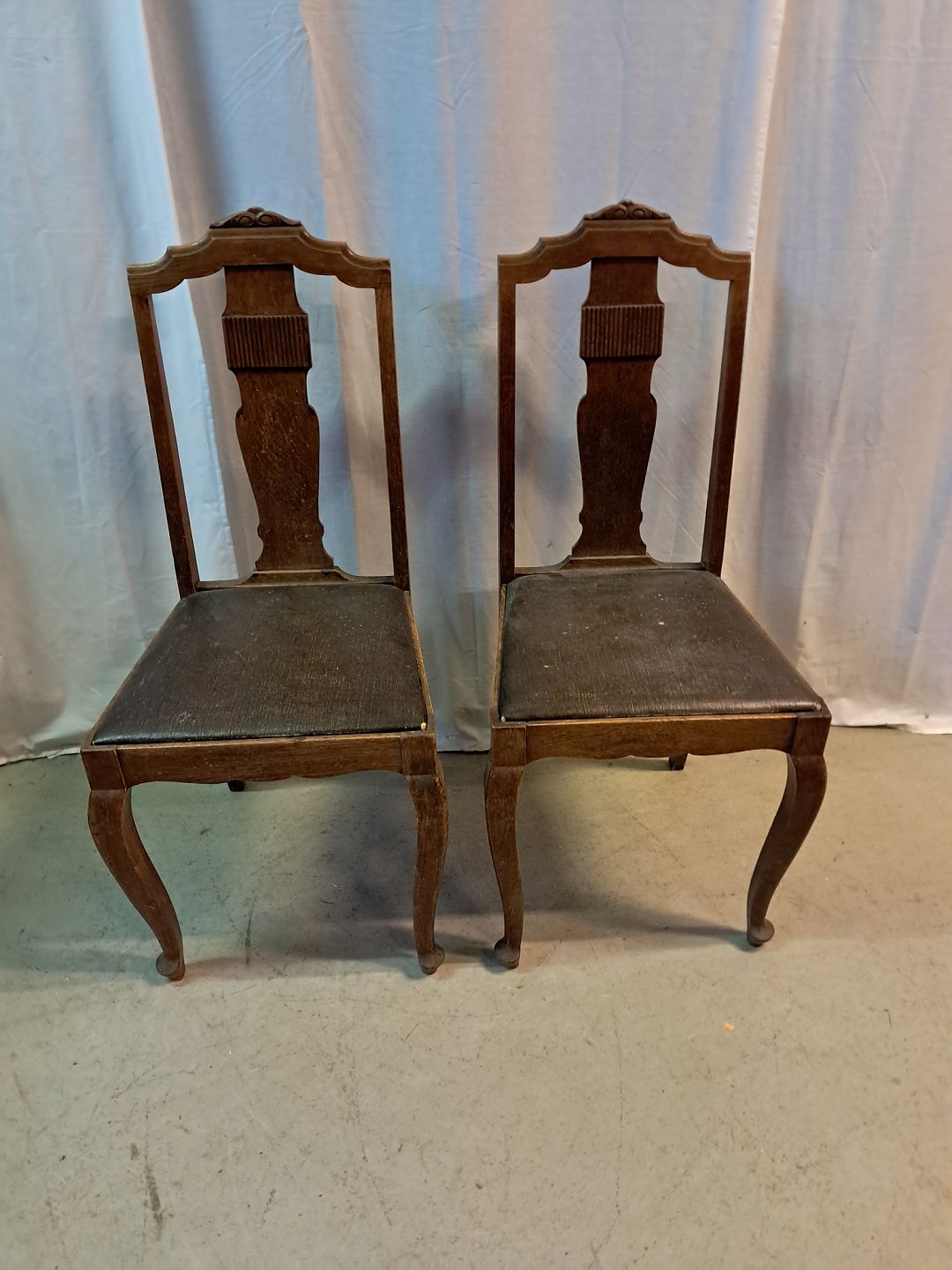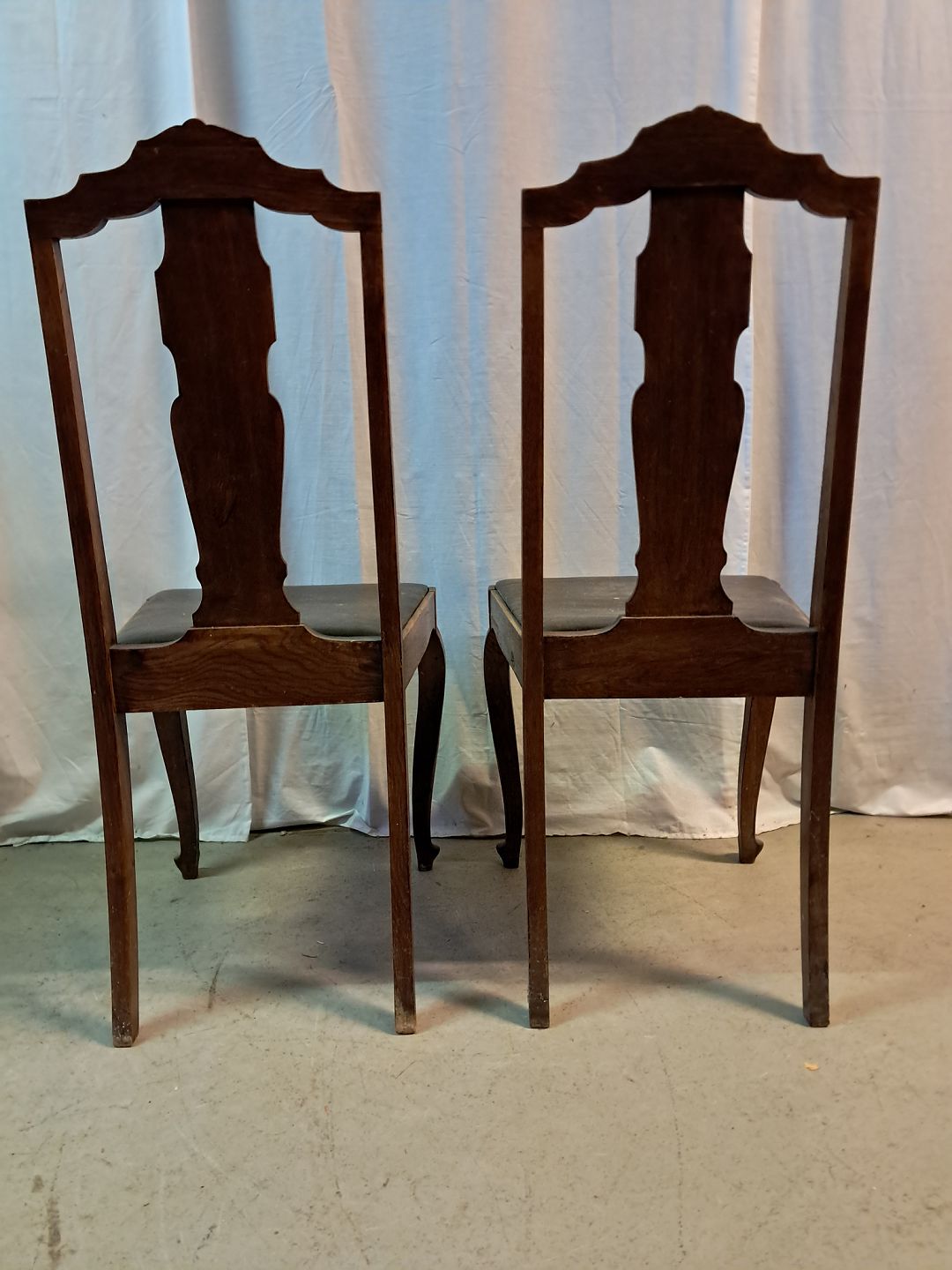 2 Stole i massivt egetræ, fra 1920erne. De har brugsspor. Ryghøjde 103cm Sædehøjde 47cm Emne nummer: 77606