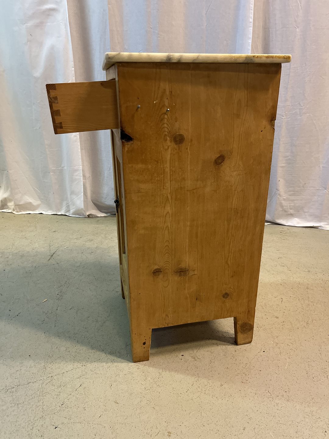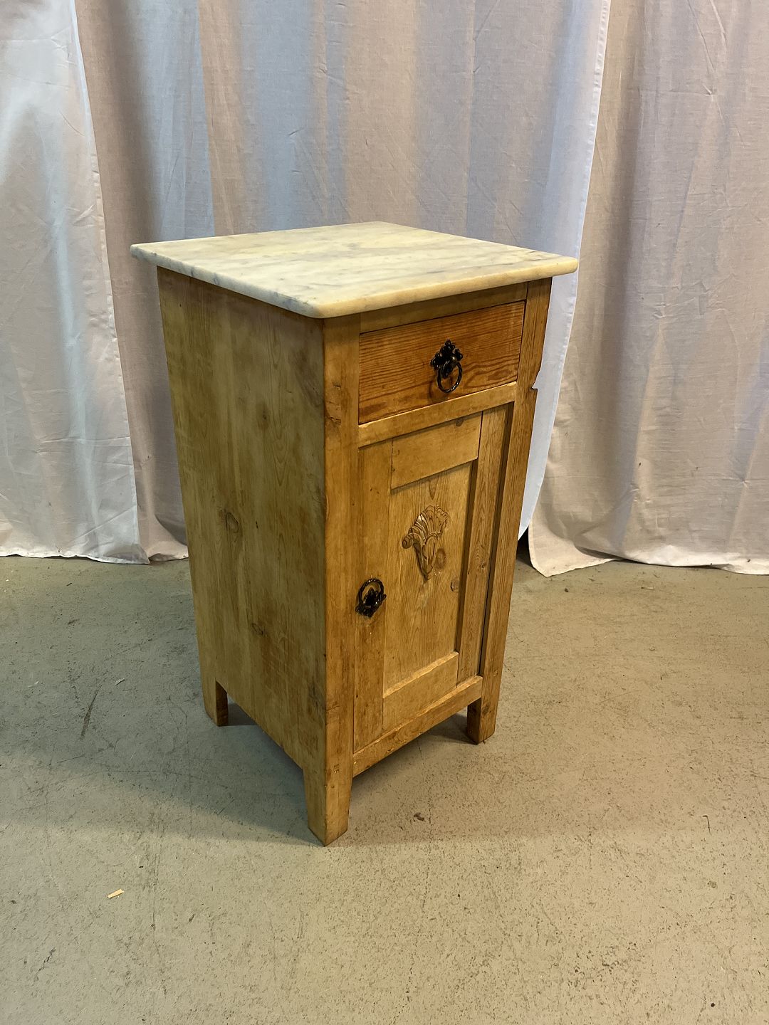 Natskab i massivt fyrretræ med marmorplade, fra 1910erne. Det har brugsspor. Højde 76cm Bredde 40cm Dybde 37cm Emne nummer: 77627