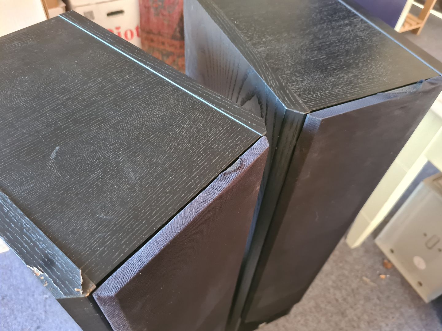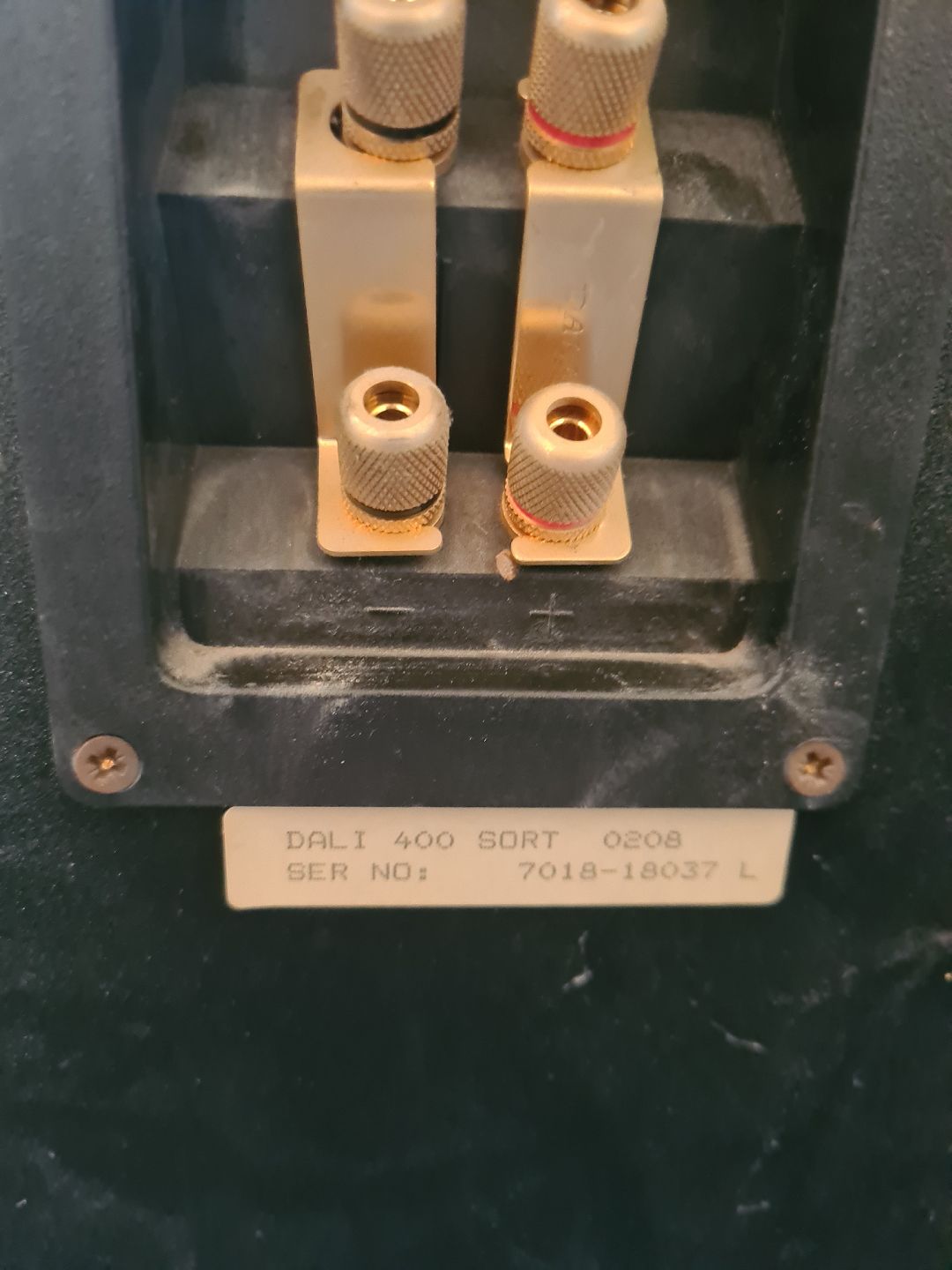 Højtalerpar fra DALI model 400. Testet og lyder fint. Fremstår dog med lidt skrammer på kabinetterne. (Billede) Højde 100 cm. Bredde 24 cm. Dybde 34 cm. Emne nummer: 60686
