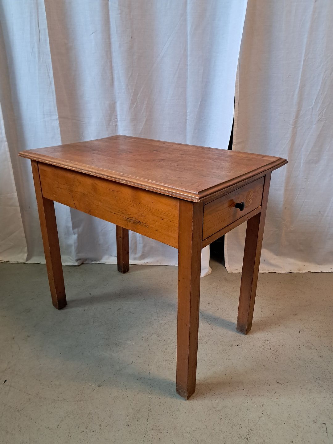 Bord i massivt fyrretræ med skuffe, fra 1940erne.