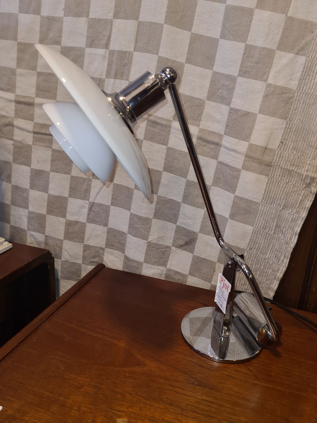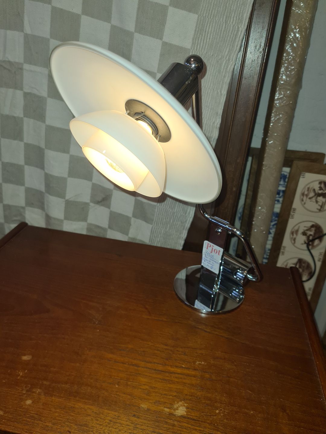 Poul Henningsen PH-2/1 Klaverlampe m. skærme i hvid opalglas og chrome stel. Fremstillet af Louis Poulsen ca. 1990'erne. Pæn stand, skærme uden defekter. Mål: H. 36 cm. Ø. 20 cm. Justerbar højde. Emne nummer: 81013
