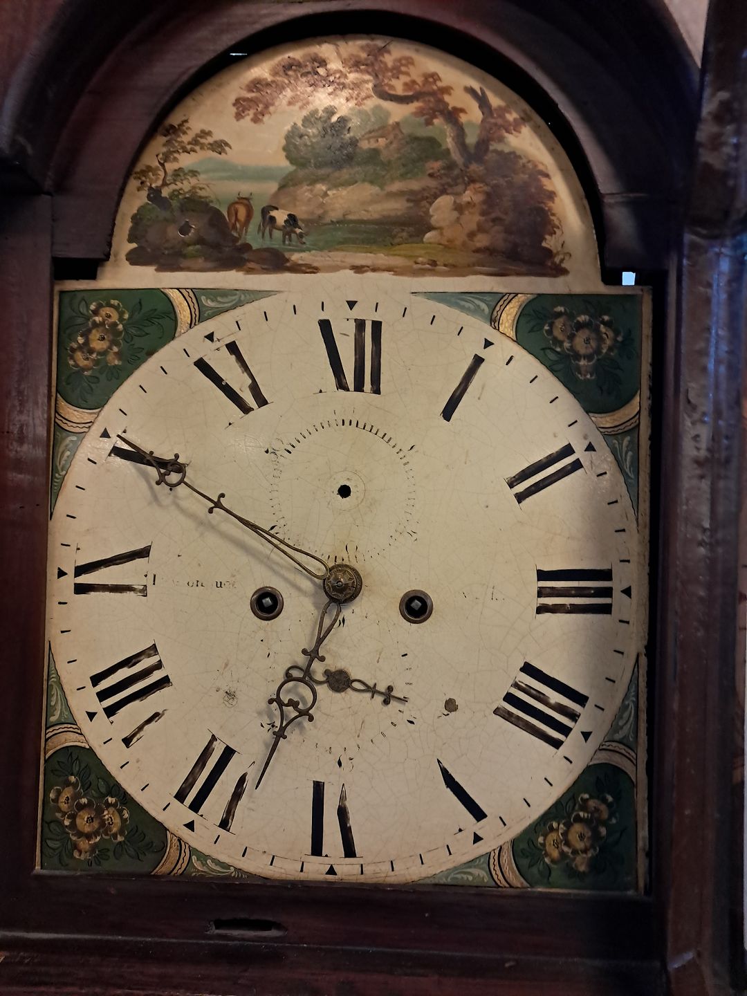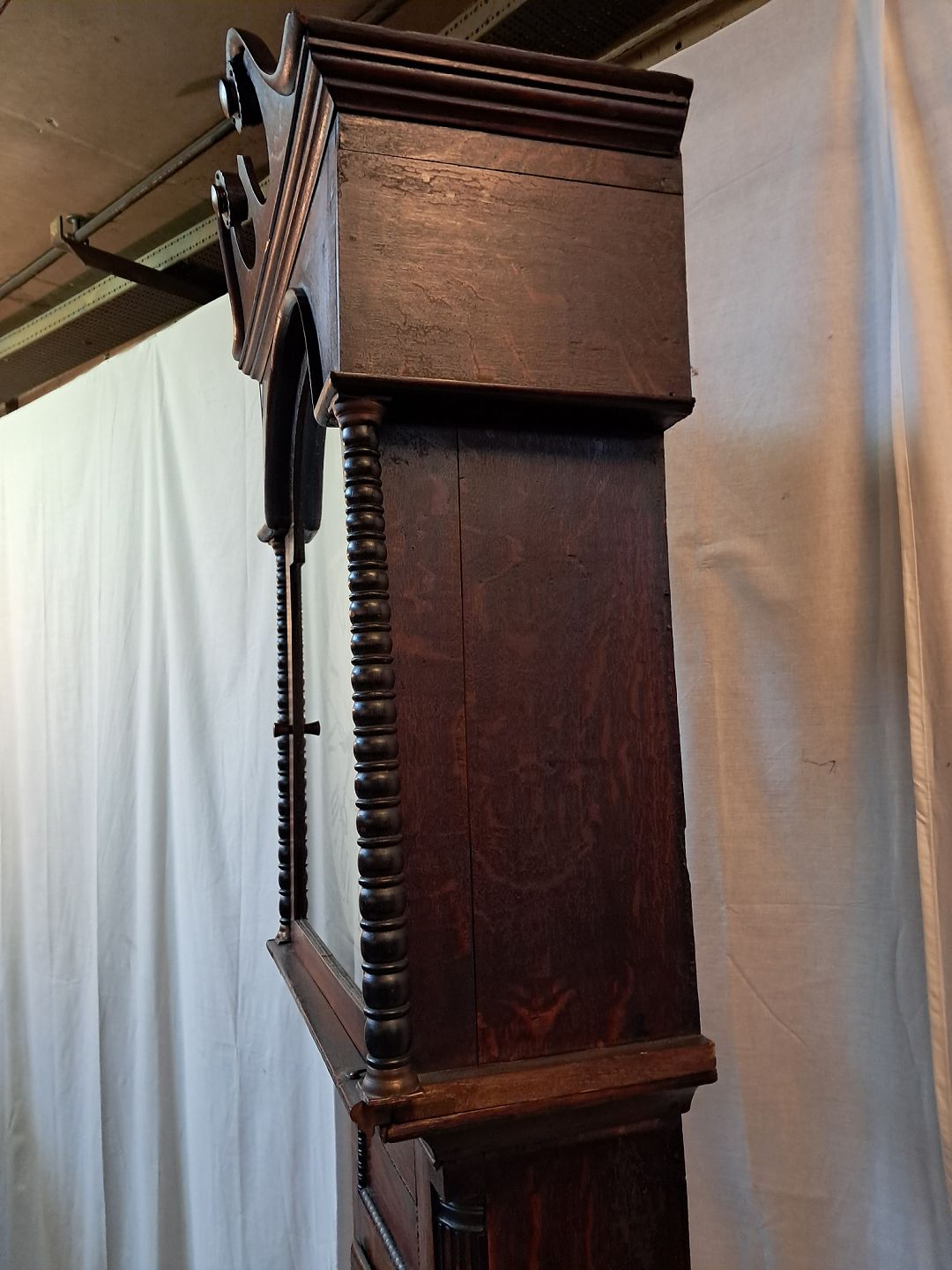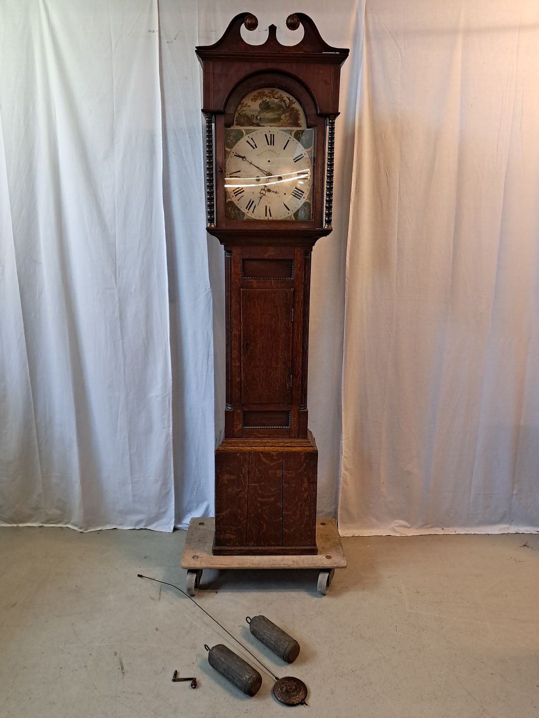 Standur i massivt egetræ, fra 1880erne. Det har brugsspor og trænger til service. Højde 205cm Bredde 48cm Dybde 32cm Emne nummer: 77771