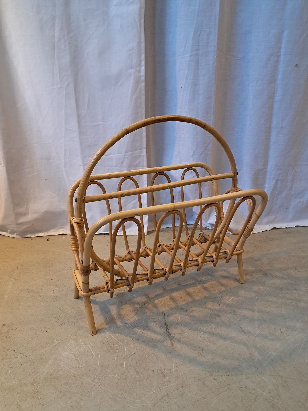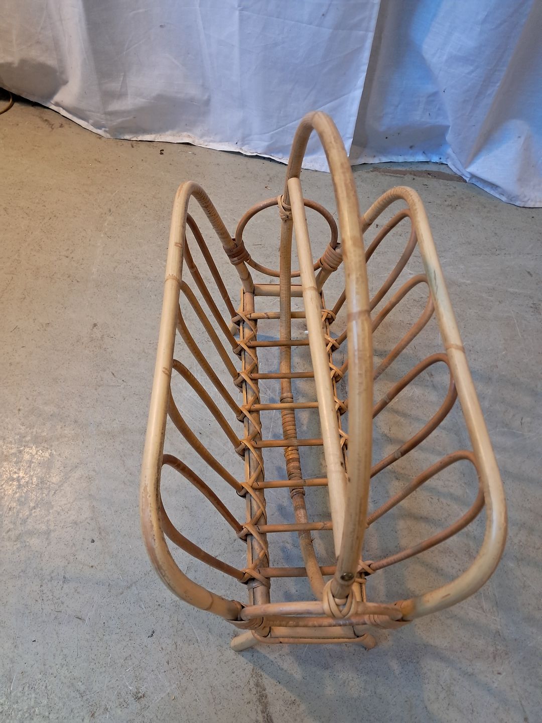 Avisholder i bambus fra 1980erne. Den har brugsspor. Højde 43cm Bredde 26cm Længde 45cm Emne nummer: 77792