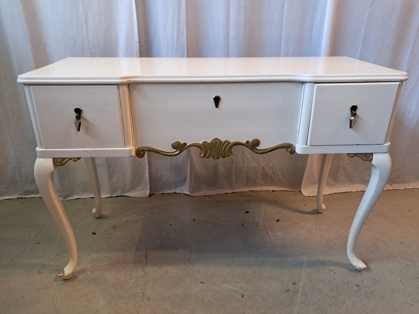 Malet sminkebord fra 1920erne. Det har brugsspor. Højde 77cm Højde fra gulv til underkant 47cm Bredde 115cm Dybde 44cm Emne nummer: 77832