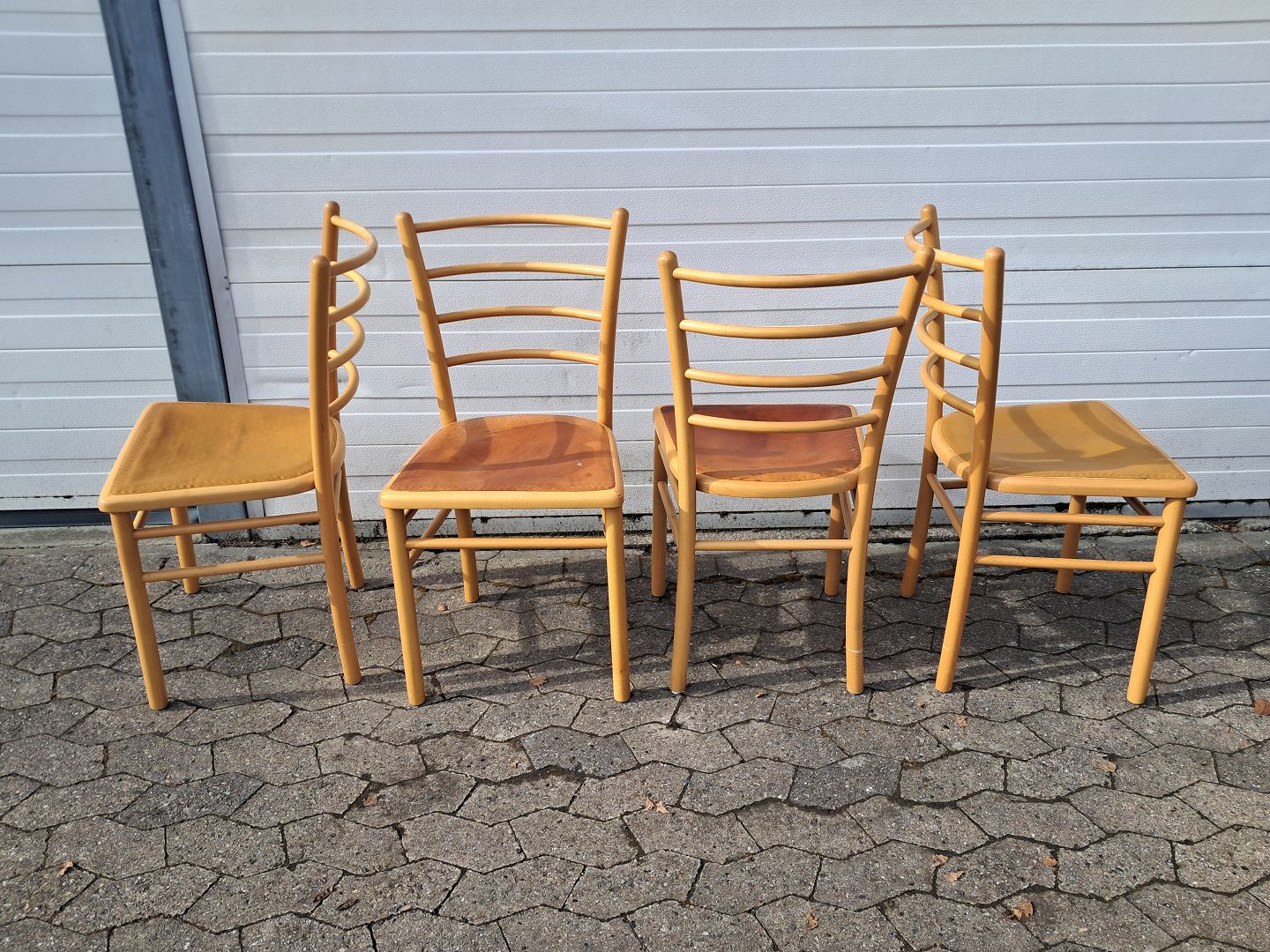 4 Stole i massivt bøgetræ, fra 1990erne. De har brugsspor. Ryghøjde 89cm Sædehøjde 46cm Emne nummer: 77855