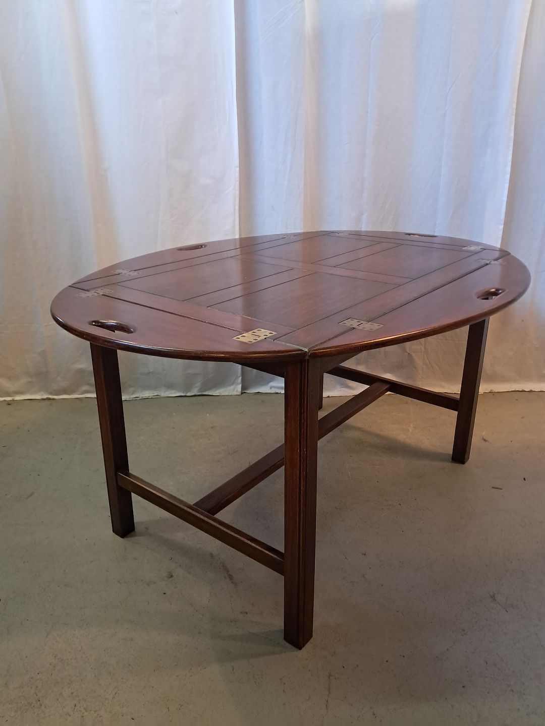 Sofabord i fineret mahogni, fra 1990erne. Det har brugsspor. Højde 60cm Bredde 88cm Længde 120cm Emne nummer: 77859