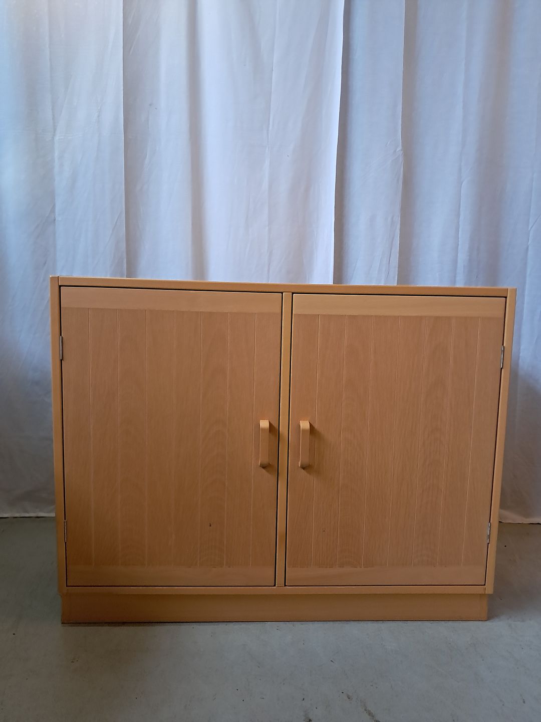 Skab i fineret bøgetræ, fra 1990erne. Det har brugsspor. Højde 81cm Bredde 102cm Dybde 43cm Emne nummer: 77910