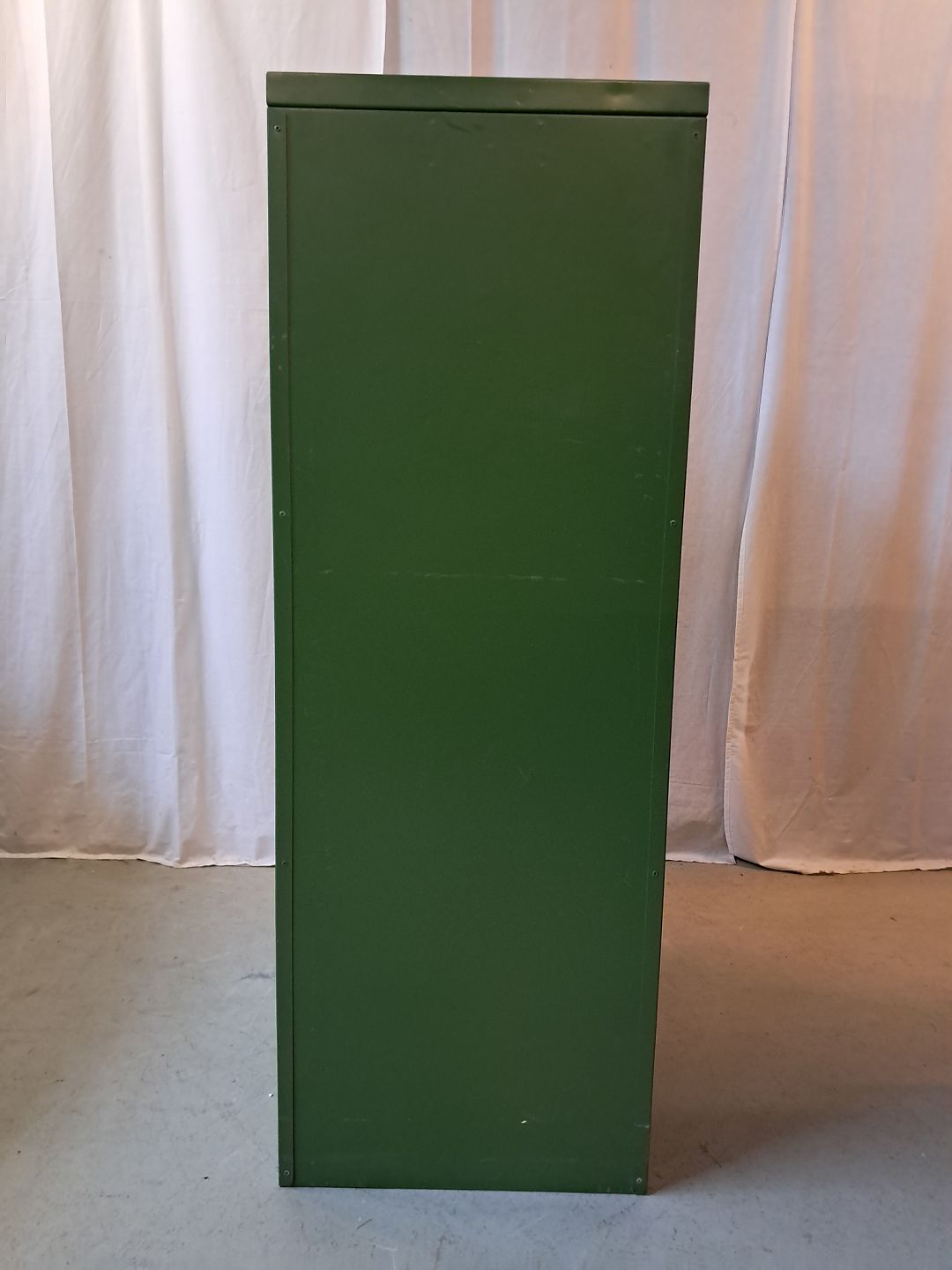 Malet metal arkivskab, fra 1970erne. Det har brugsspor. Højde 132cm Bredde 47cm Dybde 74cm Emne nummer: 77959