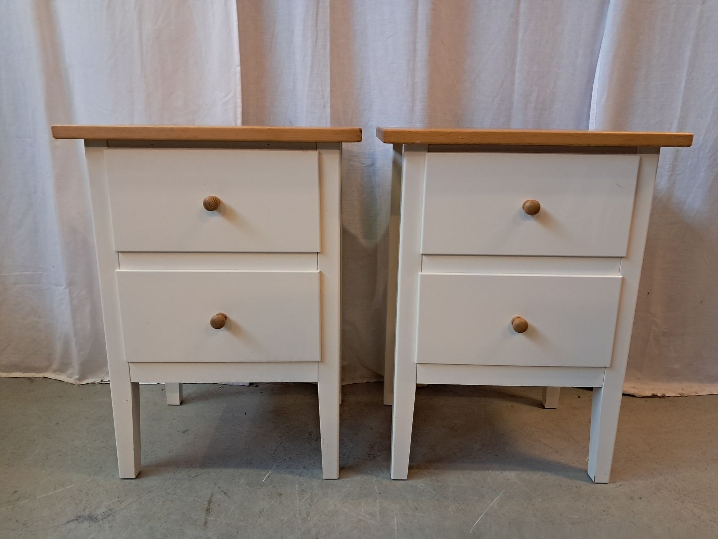 2 Kommoder i fyrretræ og laminat, af nyere dato. De har lidt brugsspor. Højde 66cm Bredde 49cm Dybde 36cm Emne nummer: 77960