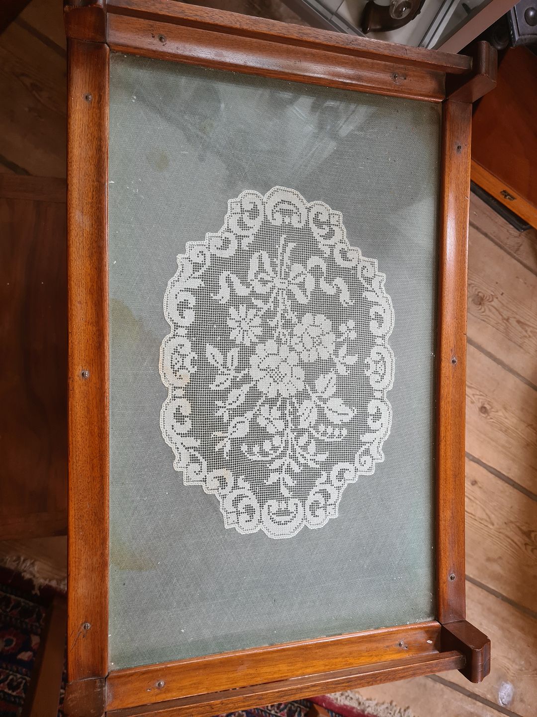 Lampebord fra 1930'erne i mahogni med glasplade og bar rum. Fremstår pænt velholdt og funktionsdygtigt, med kun en anelse brugsspor på broderiet under glaspladen. Højde 75 cm. Længde 60 cm. Bredde 40 cm. Emne nummer: 81038