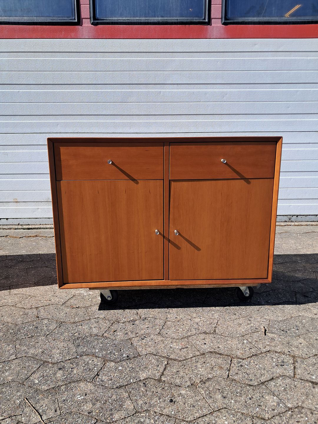 Vægskab i fineret kirsebær, fra 2000erne. Det har brugsspor og der medfølger ophæng. Højde 55cm Bredde 80cm Dybde 40cm Emne nummer: 77976