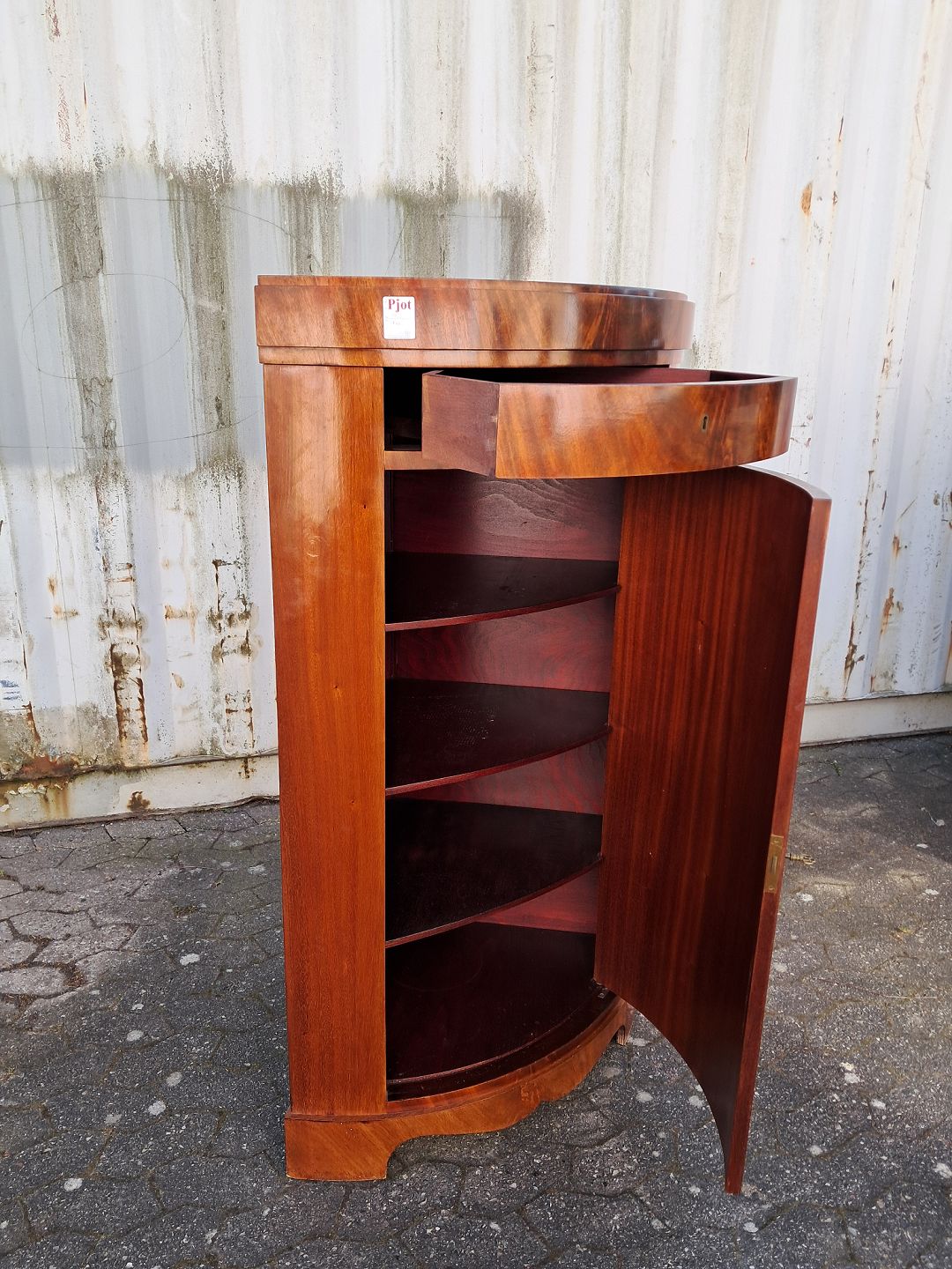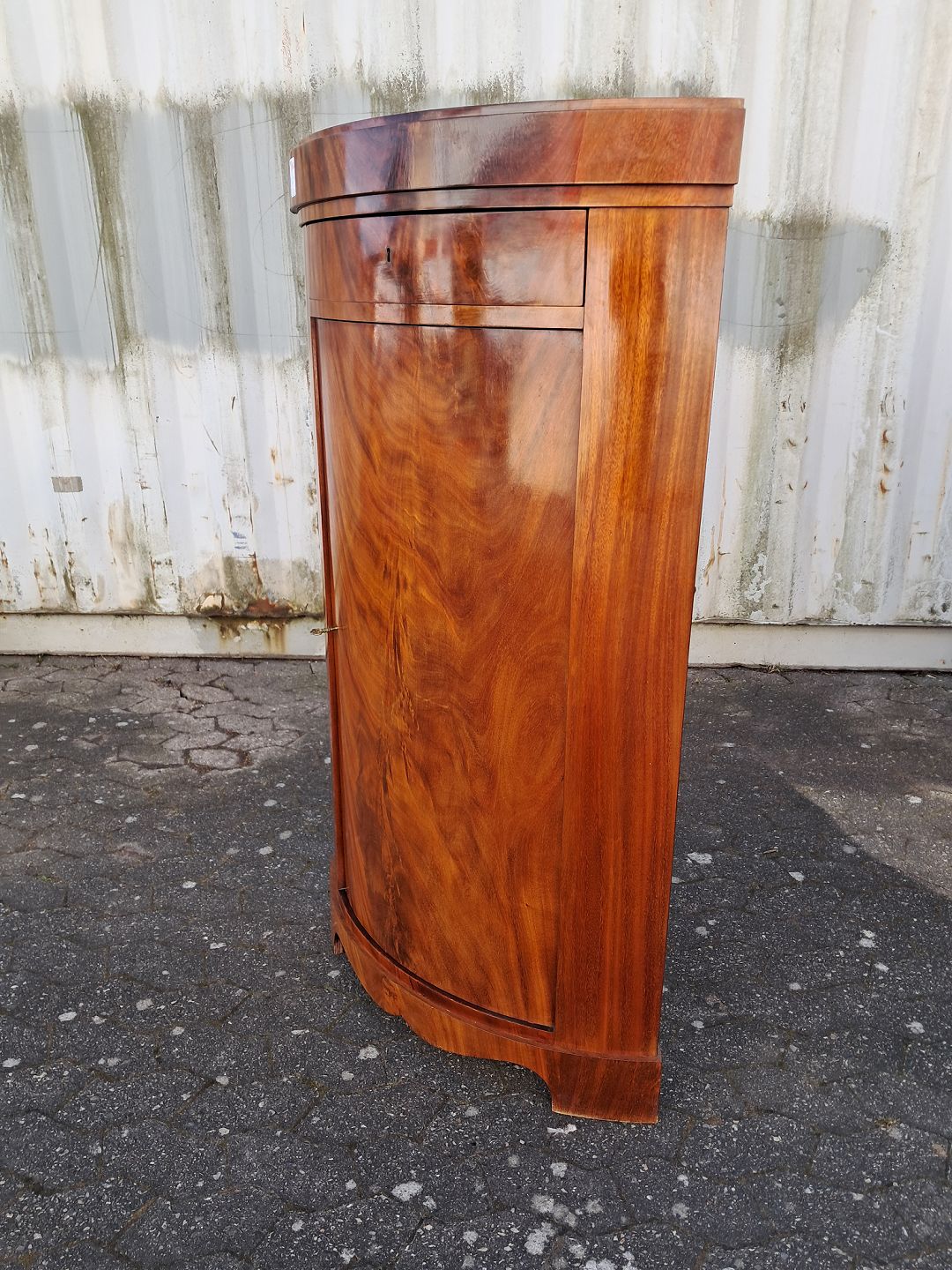 Hjørneskab i fineret mahogni, fra 1910erne. Det har brugsspor. Højde 140cm Bredde 79cm Dybder 57cm Emne nummer: 77988