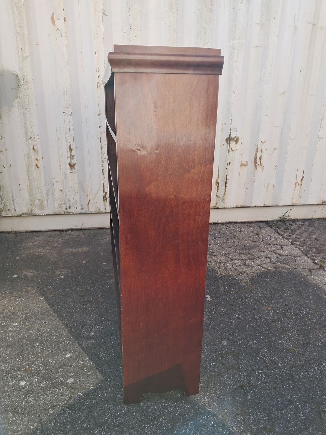 Reol i fineret mahogni, fra 1910erne. Den har brugsspor. Højde 140cm Bredde 147cm Dybde 32cm Emne nummer: 77989