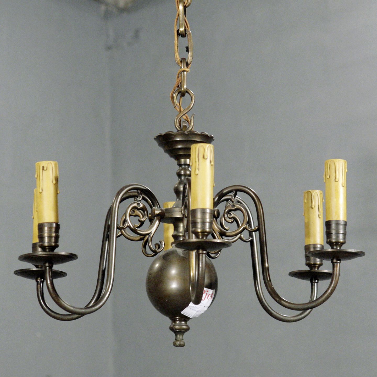 6-armet kirkekrone i bruneret messing, 53 cm i diameter, ca. 1950